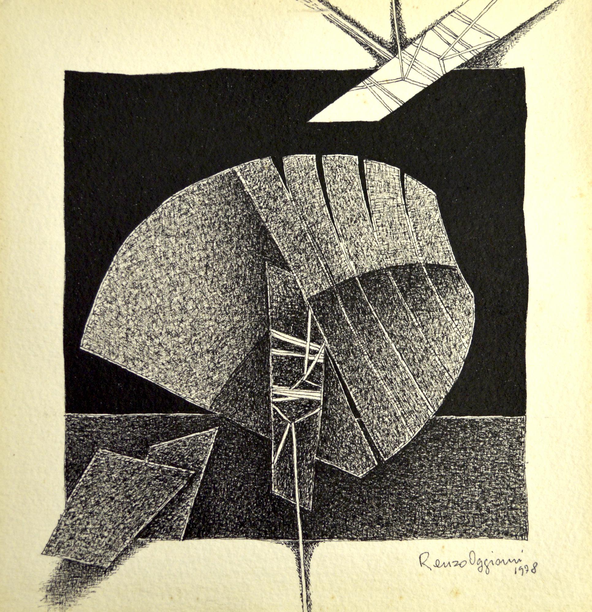 Renzo Oggioni L'IDEA FISSA china su carta, cm 16x16 firma e data sul retro...