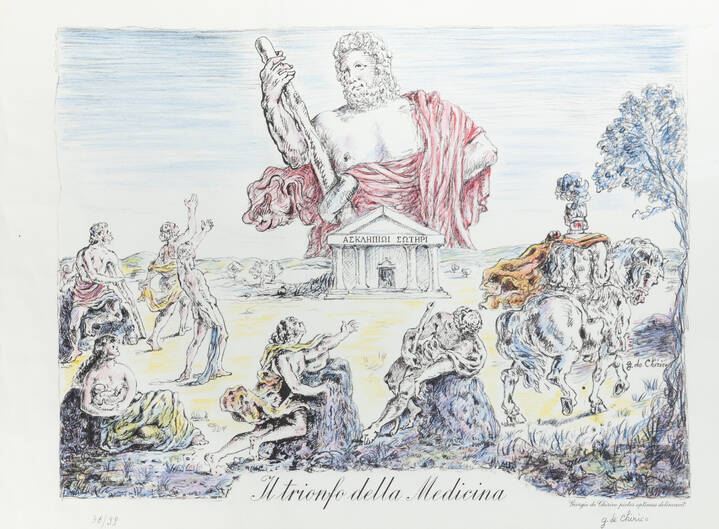 GIORGIO DE CHIRICO<BR>Volos (Grecia) 1888 - 1978 Roma<BR>"Il trionfo della medicina"