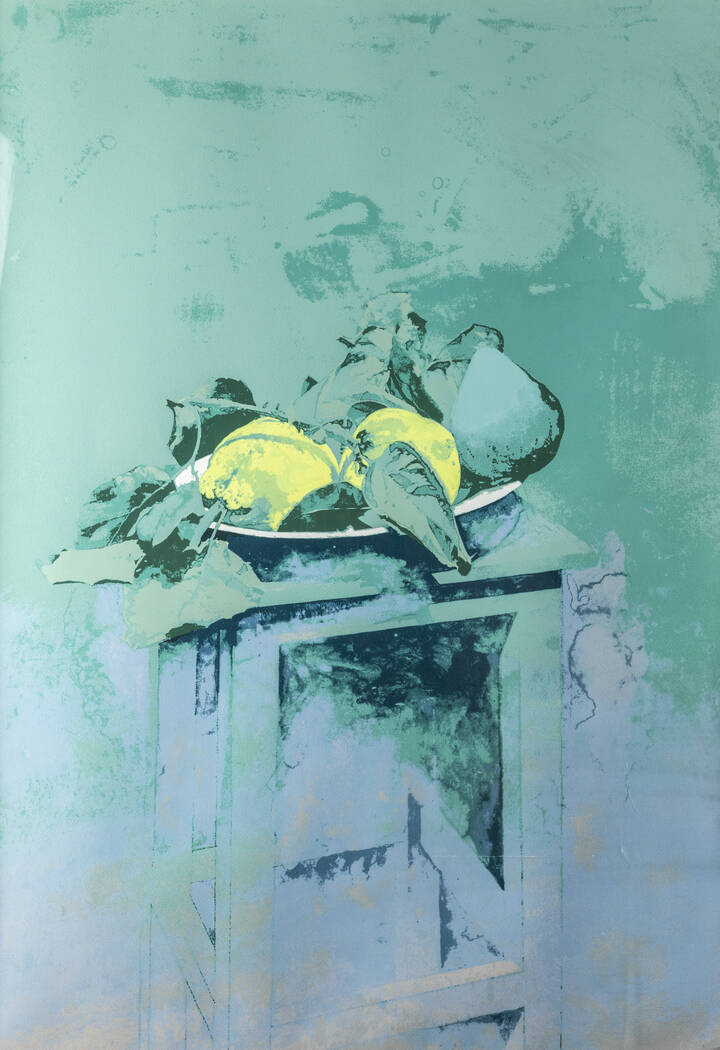 SERGIO SARONI<BR>Torino 1934 - 1991<BR>"Natura morta con frutta" seconda metà anni 80