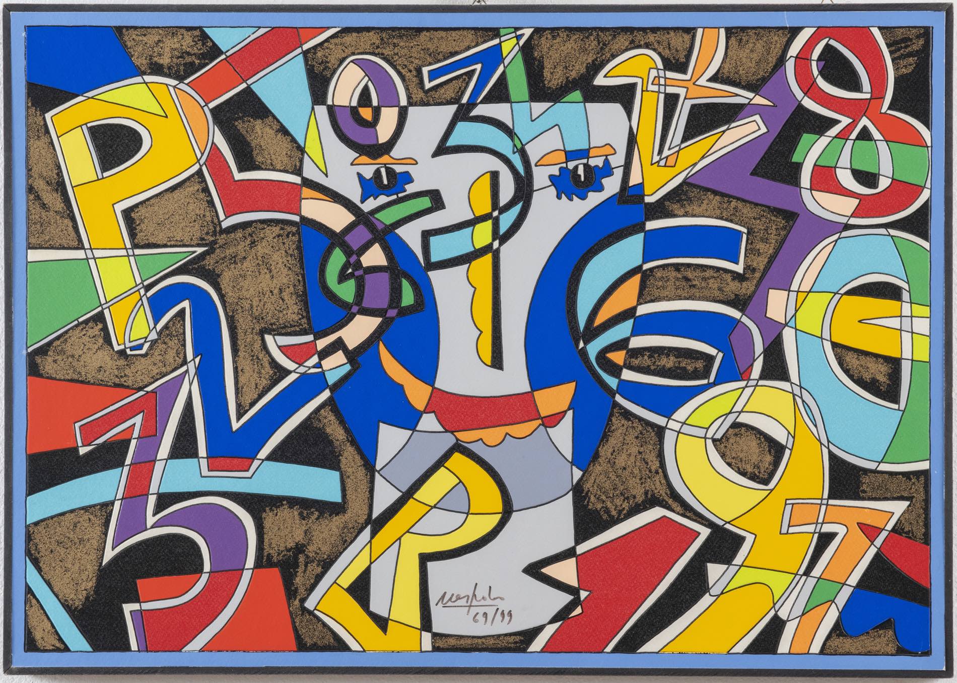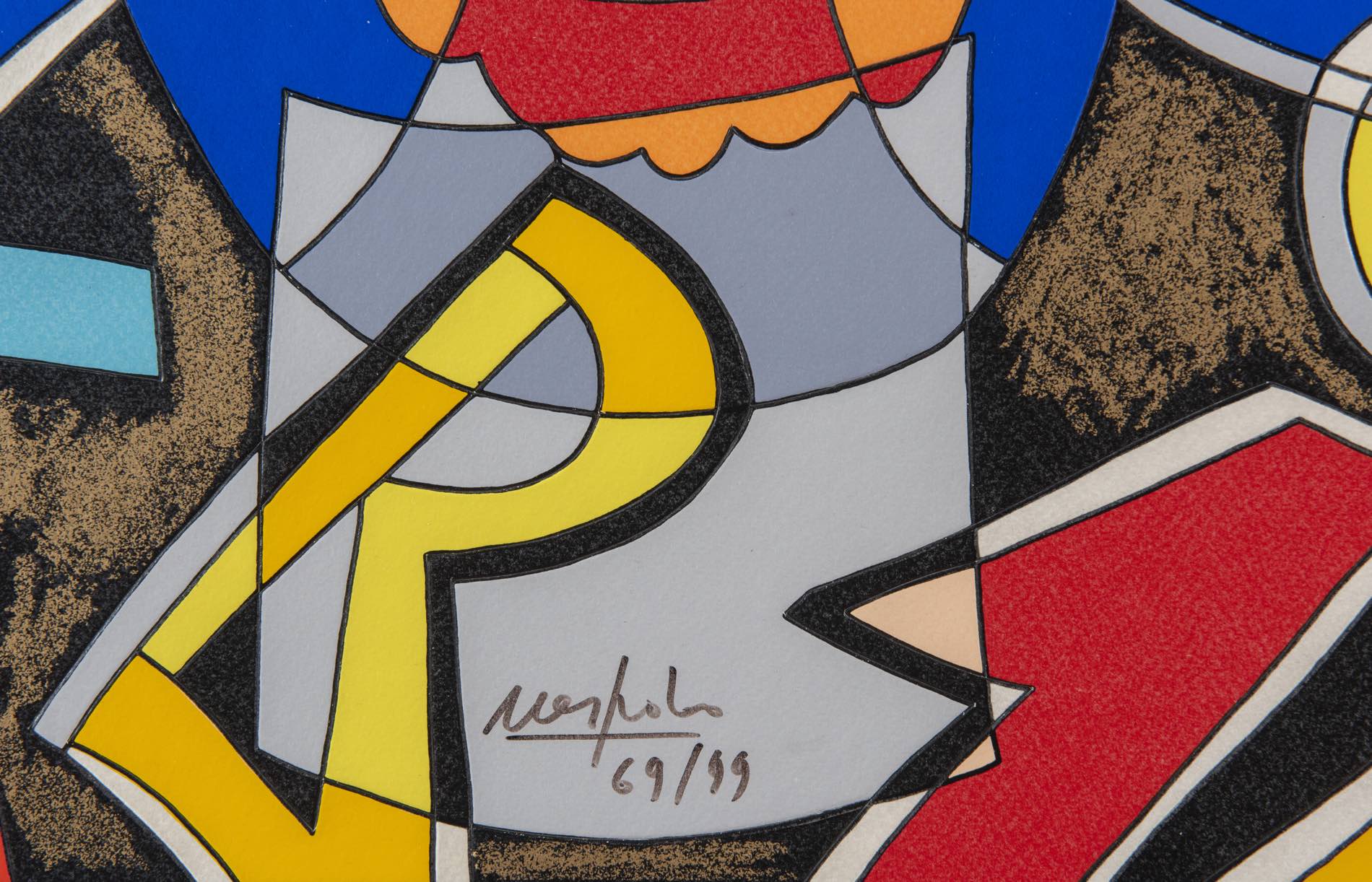 Ugo Nespolo (Mosso 1941), “Senza titolo”.Serigrafia a colori su cartoncino, firma e numero di tiratura in basso al centro “Nespolo 66/99”, H cm 48.5x68.5