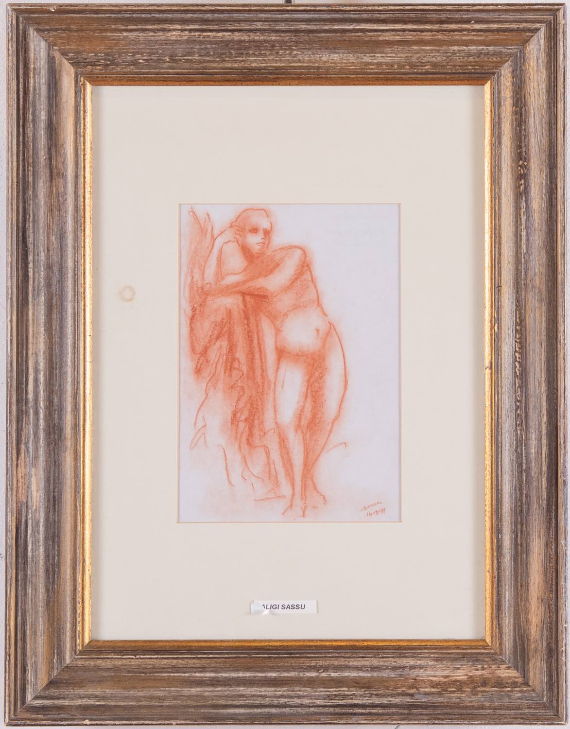 Aligi Sassu (Milano 1912 - Pollença 2000), “Nudo di donna”, 1971. Sanguigna su carta, firmato e datato in basso a destra “Sassu/14-7-71”, H cm 30x21 - con cornice H cm 65x50 - Opera accompagnata da certificato di autenticità a firma dell'artista datato 14 Ottobre 1999.
