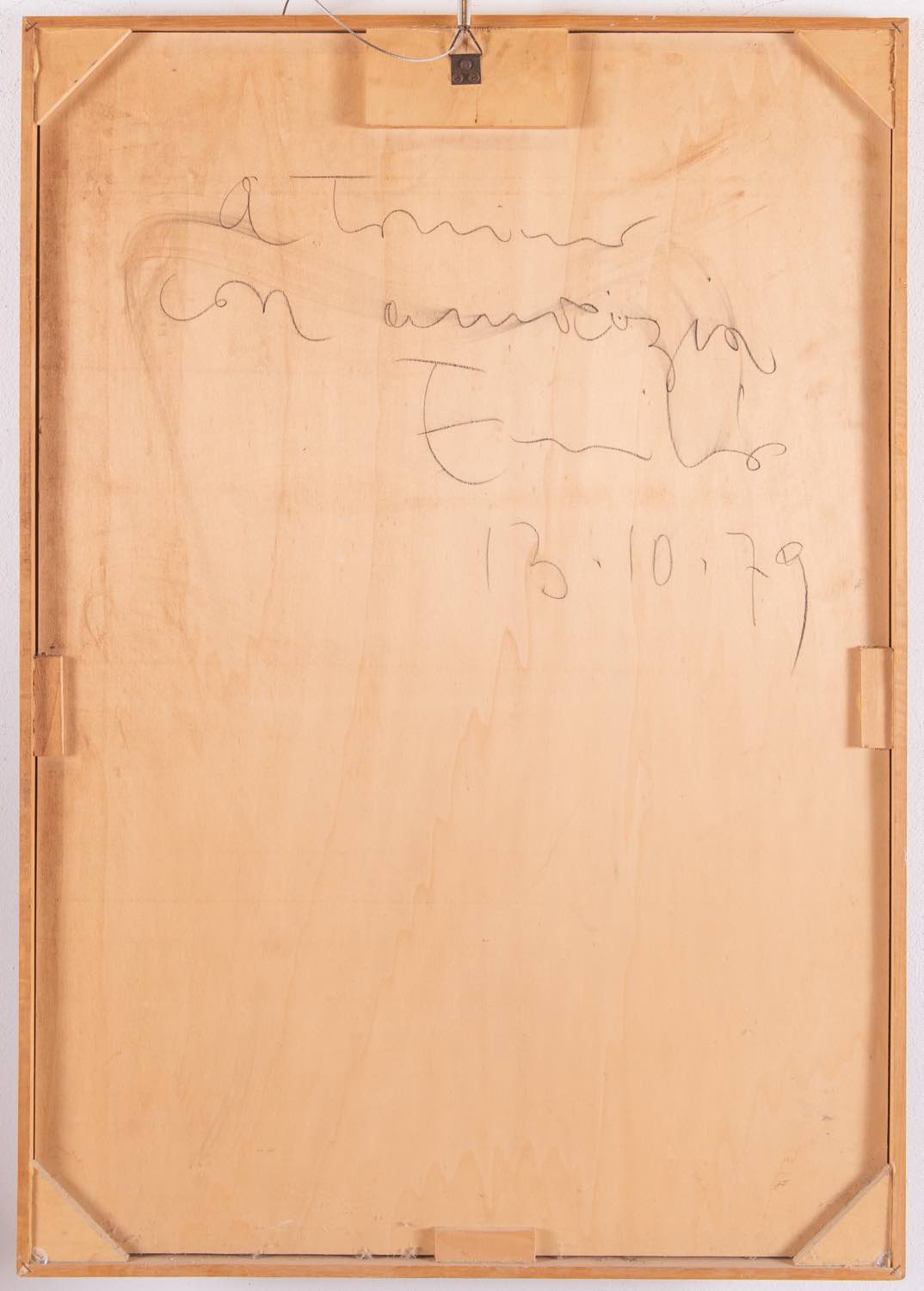 Emilio Scanavino (Genova 1922 - Milano 1986), “Senza titolo”. Litografia a colori su carta, firmata in basso a destra Scanavino, esemplare in basso a sinistra V/X, al retro reca dedica a firma dell'artista datata 13-10-79, H cm 98.5x69