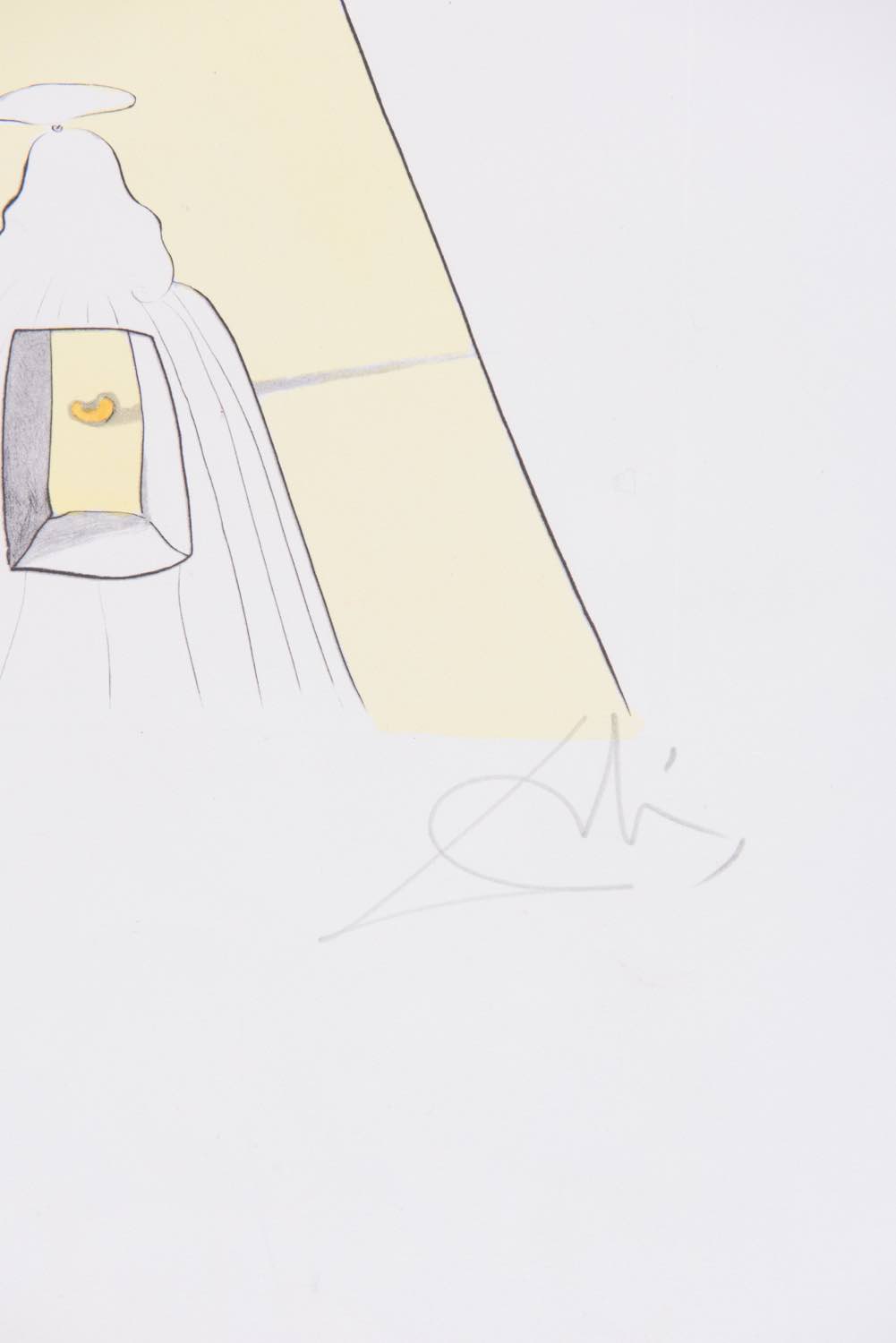 Salvador Dalí (Figueres 1904 - 1989), “Dieu, le Temps, l’espace et le Pape”. Puntasecca a colori su carta, firmata in basso a destra Dalì, esemplare e numero di tiratura in basso a sinistra F 185/195, reca timbro a secco Transworld Art, Foglio H cm 65.5x50 - Lastra H cm 40x30 (lievi usure)