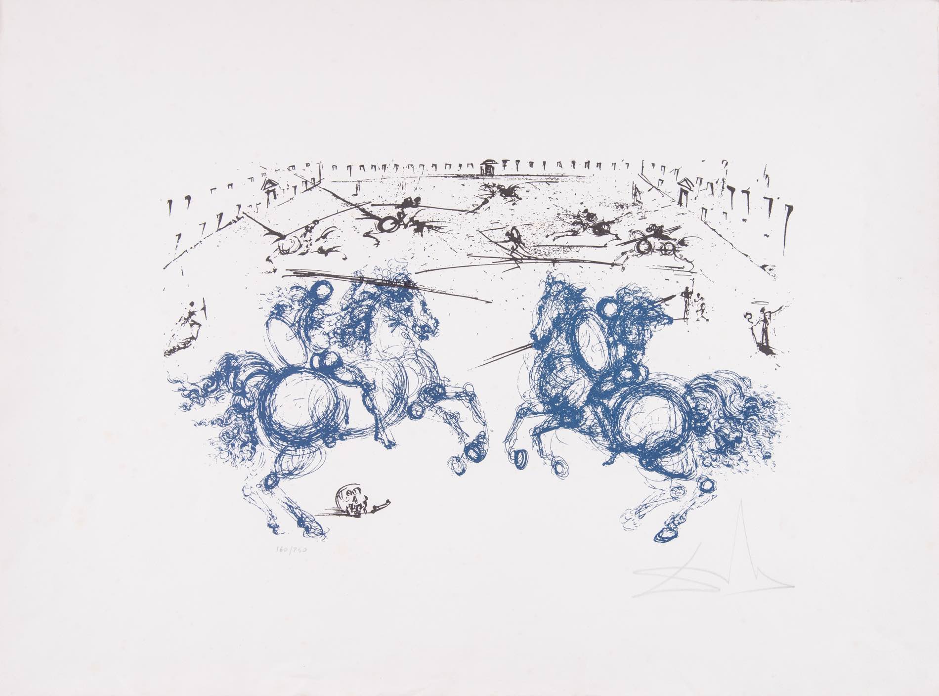 Salvador Dalí (Figueres 1904 - 1989), “Combat de Chevaliers”. Acquaforte su carta, firmata in basso a destra Dalì, numero di tiratura in basso a sinistra 160/250, H cm 56x78 (lievi usure)