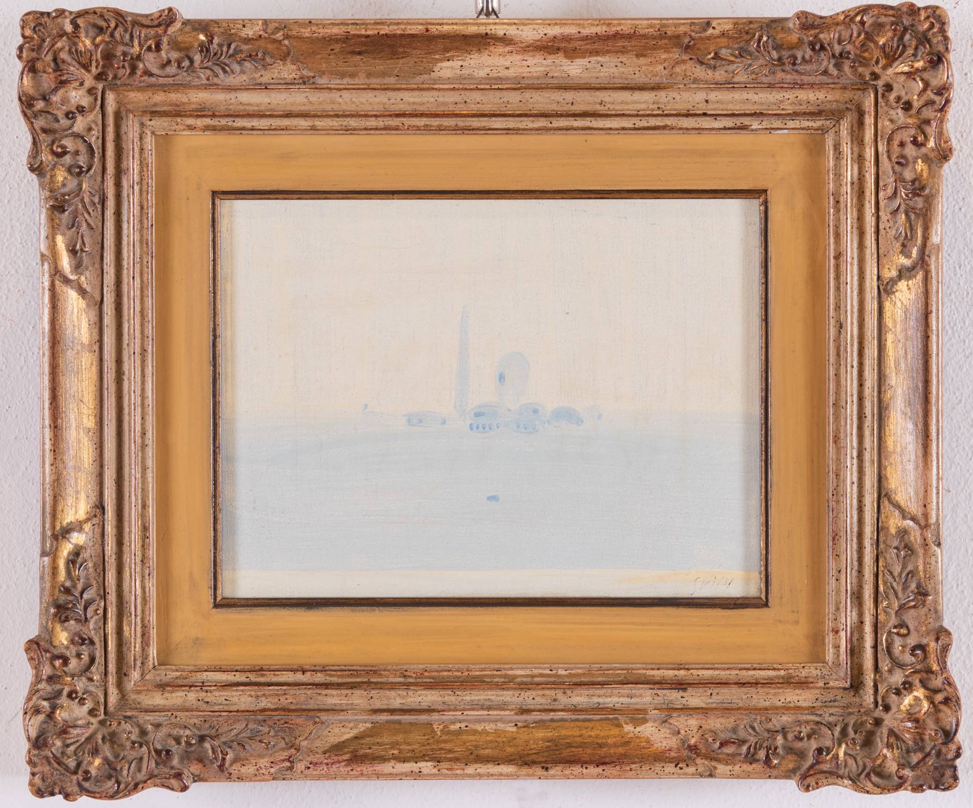 Virgilio Guidi (Roma 1891 - Venezia 1984), “Isola di San Giorgio a Venezia”. Olio su tela, firmato in basso a destra Guidi, al retro reca iscrizione per autentica a firma Guidi, H cm 18x24 - con cornice H cm 33x39