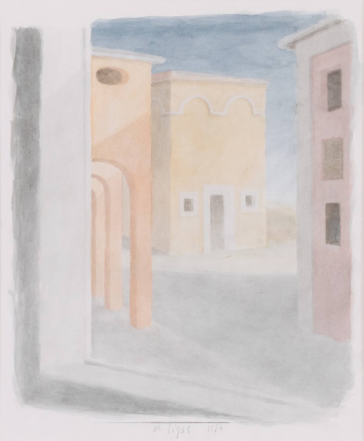 Maurizio Ligas (Treviso 1951 - Siena 2005), “Scorcio cittadino”, 1986.Acquerello su carta,