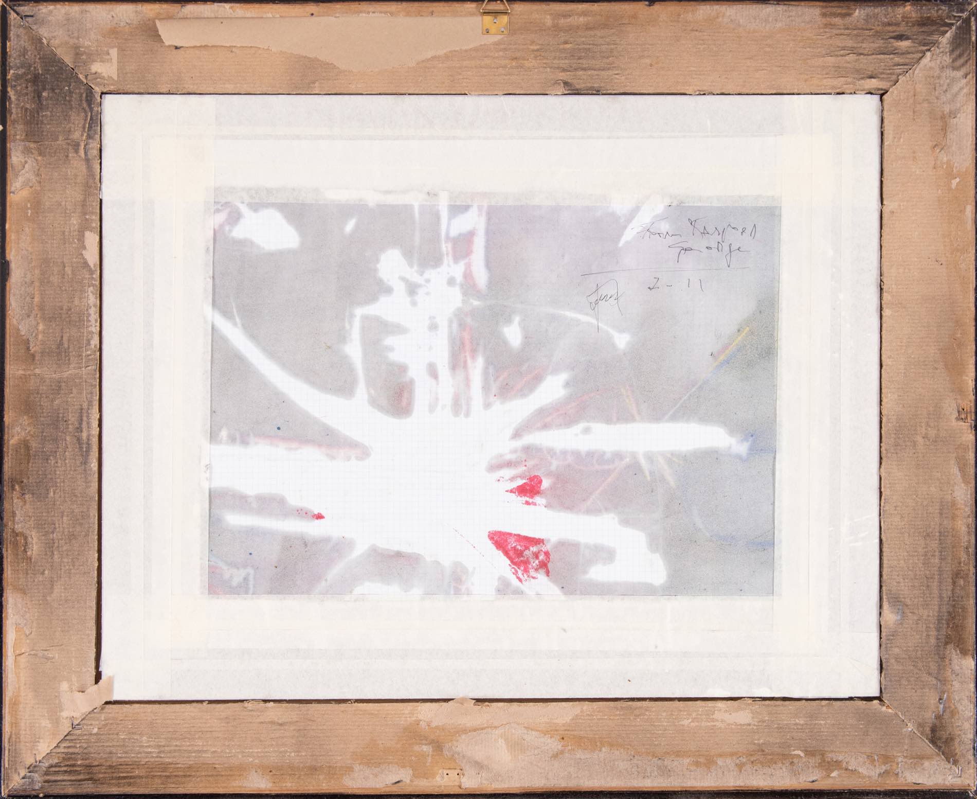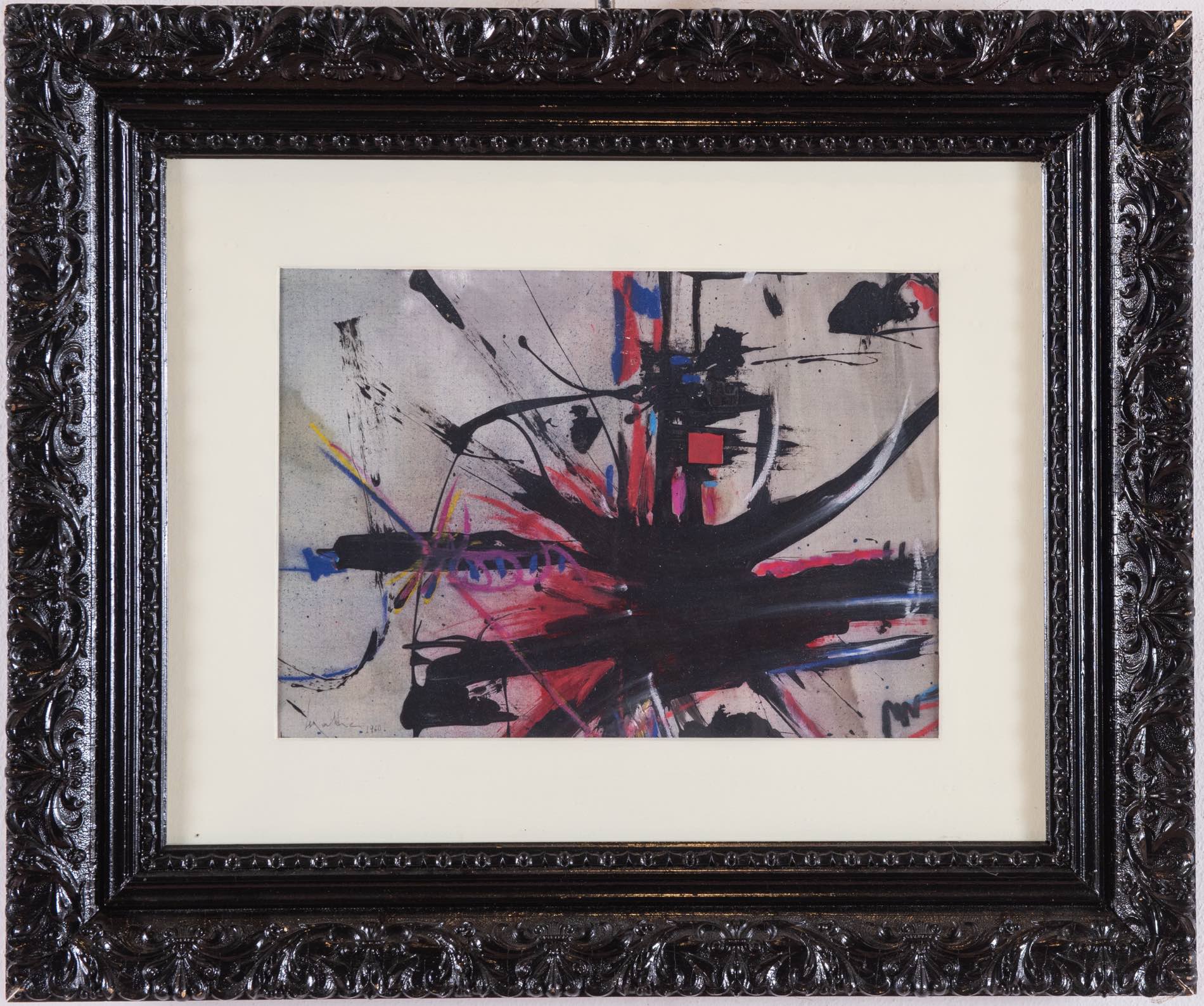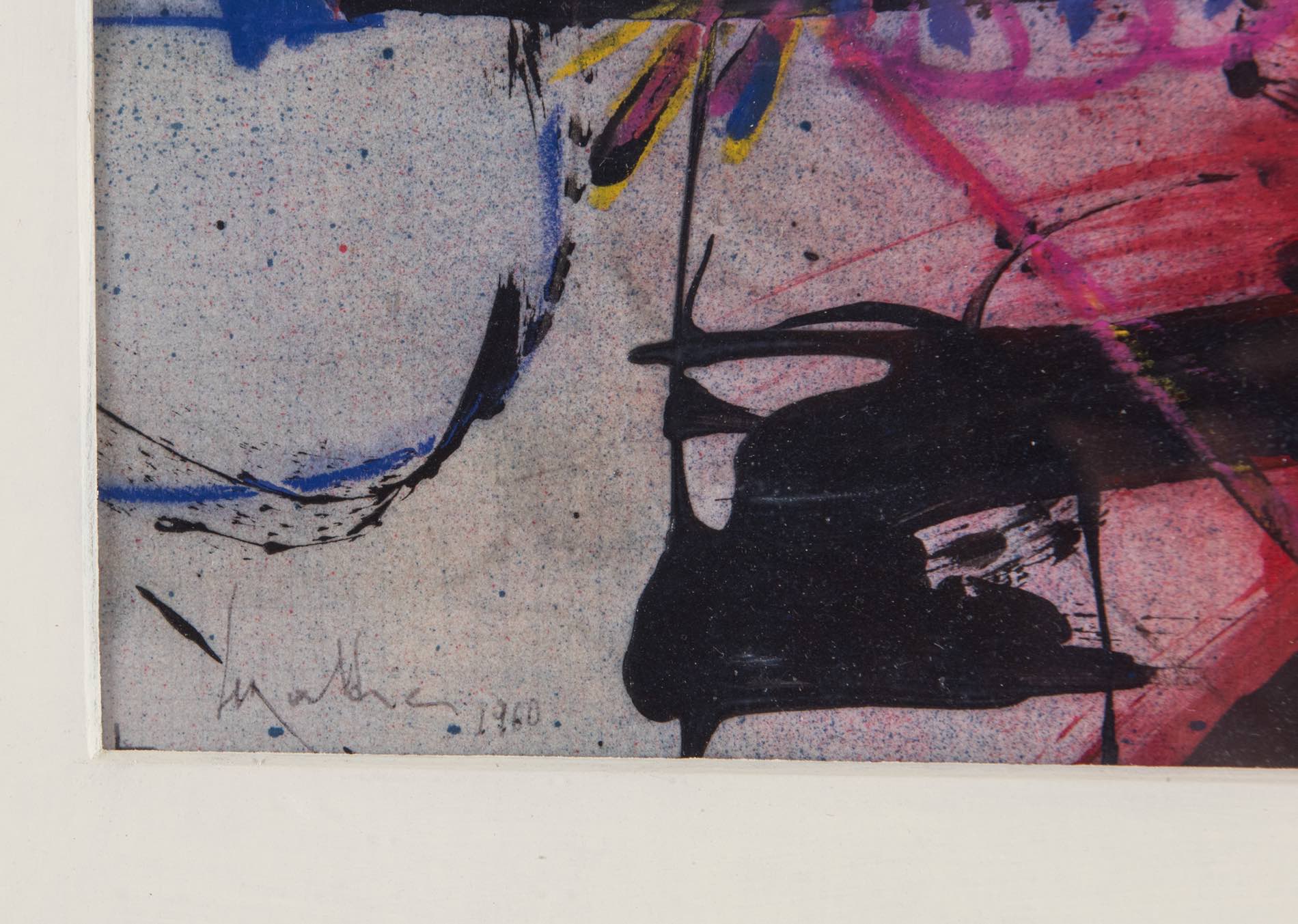 Georges Mathieu (Boulogne-sur-Mer 1921 - Boulogne-Billancourt 2012), “Composizione”, 1960. Tecnica mista su carta, firmata e datata in basso a sinistra Mathieu 1960, reca al retro iscrizione, H cm 26.5x37 - con cornice H cm 55x65 - Provenienza: Galerie Kasper - Lusanne. Opera accompagnata da fotografia con timbro e firma della Galerie Kasper - Lusanne.