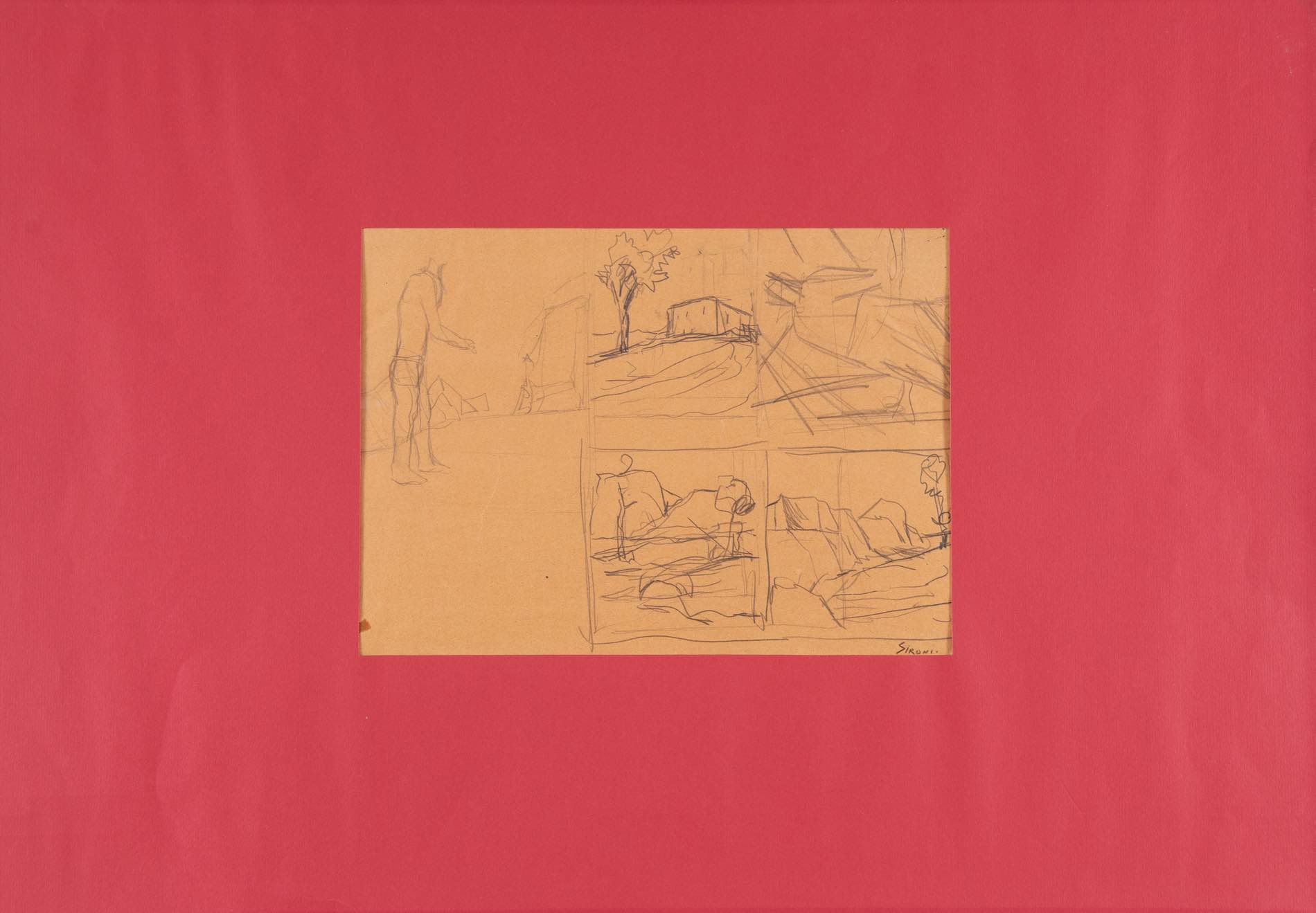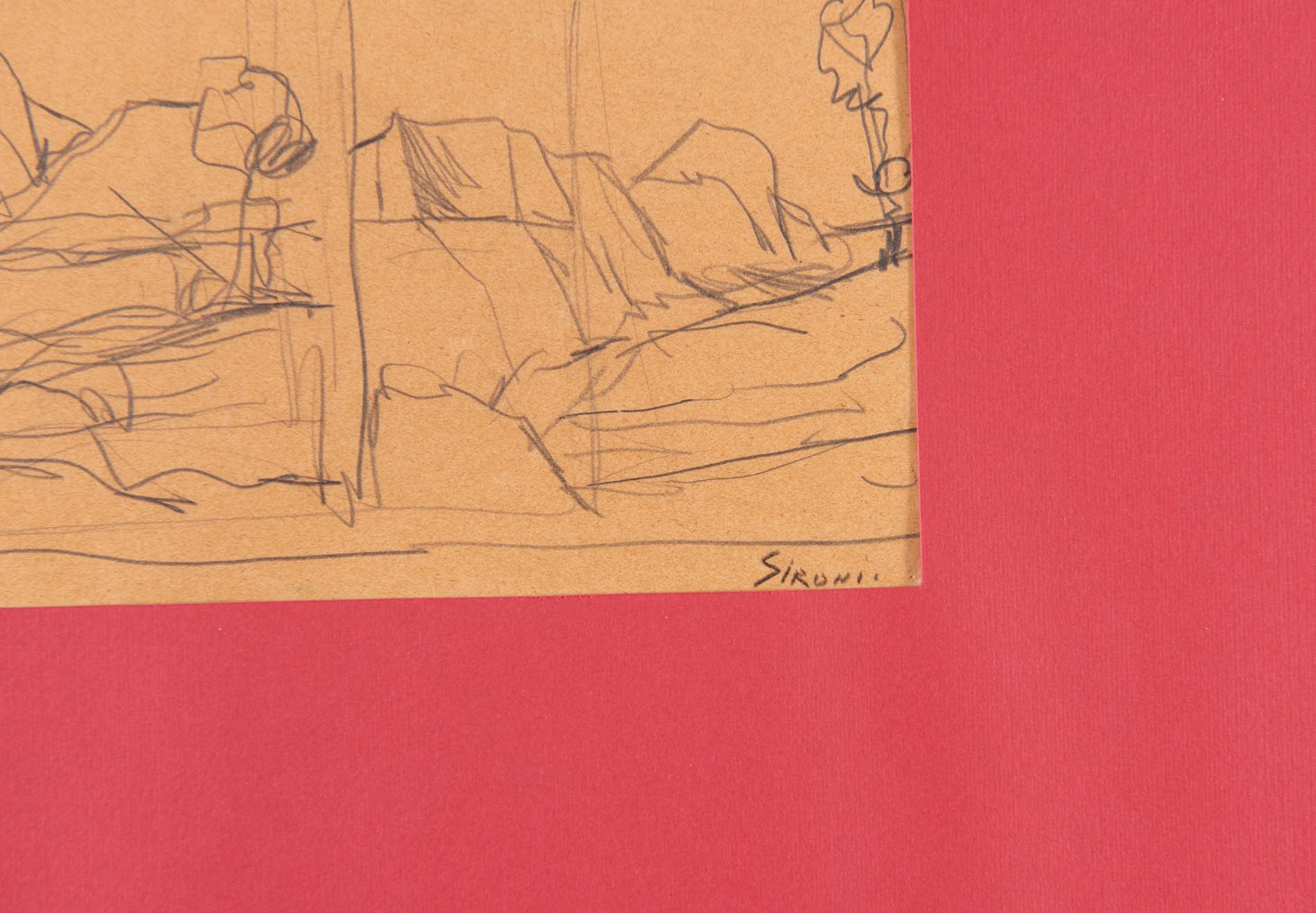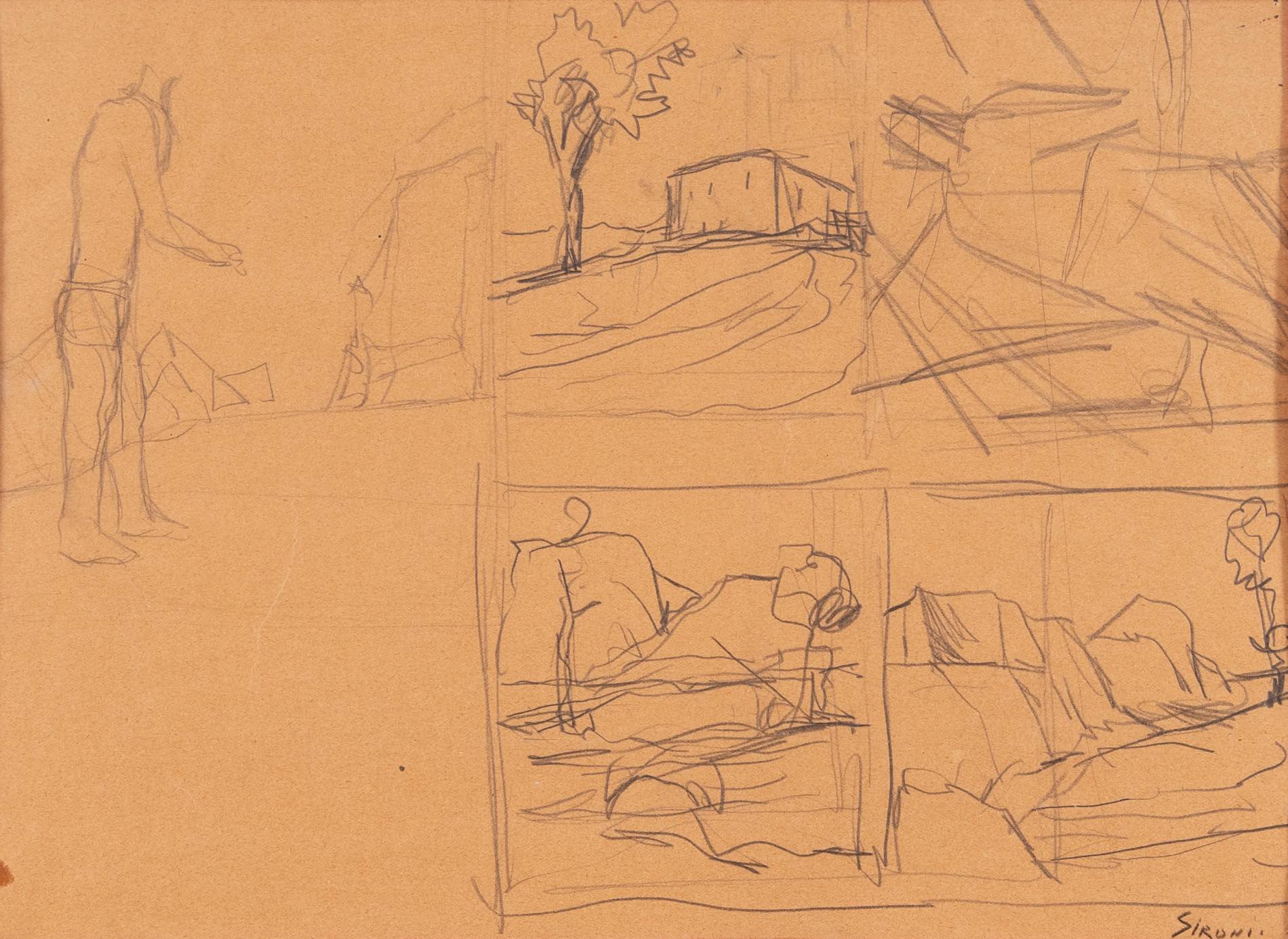 Mario Sironi (Sassari 1885 - Milano 1961), “Tre paesaggi”.Disegno a matita su carta, firmato in