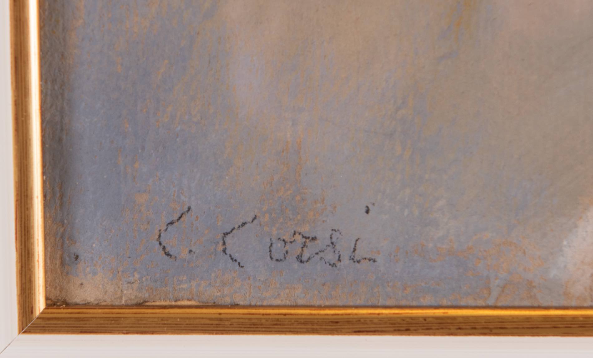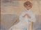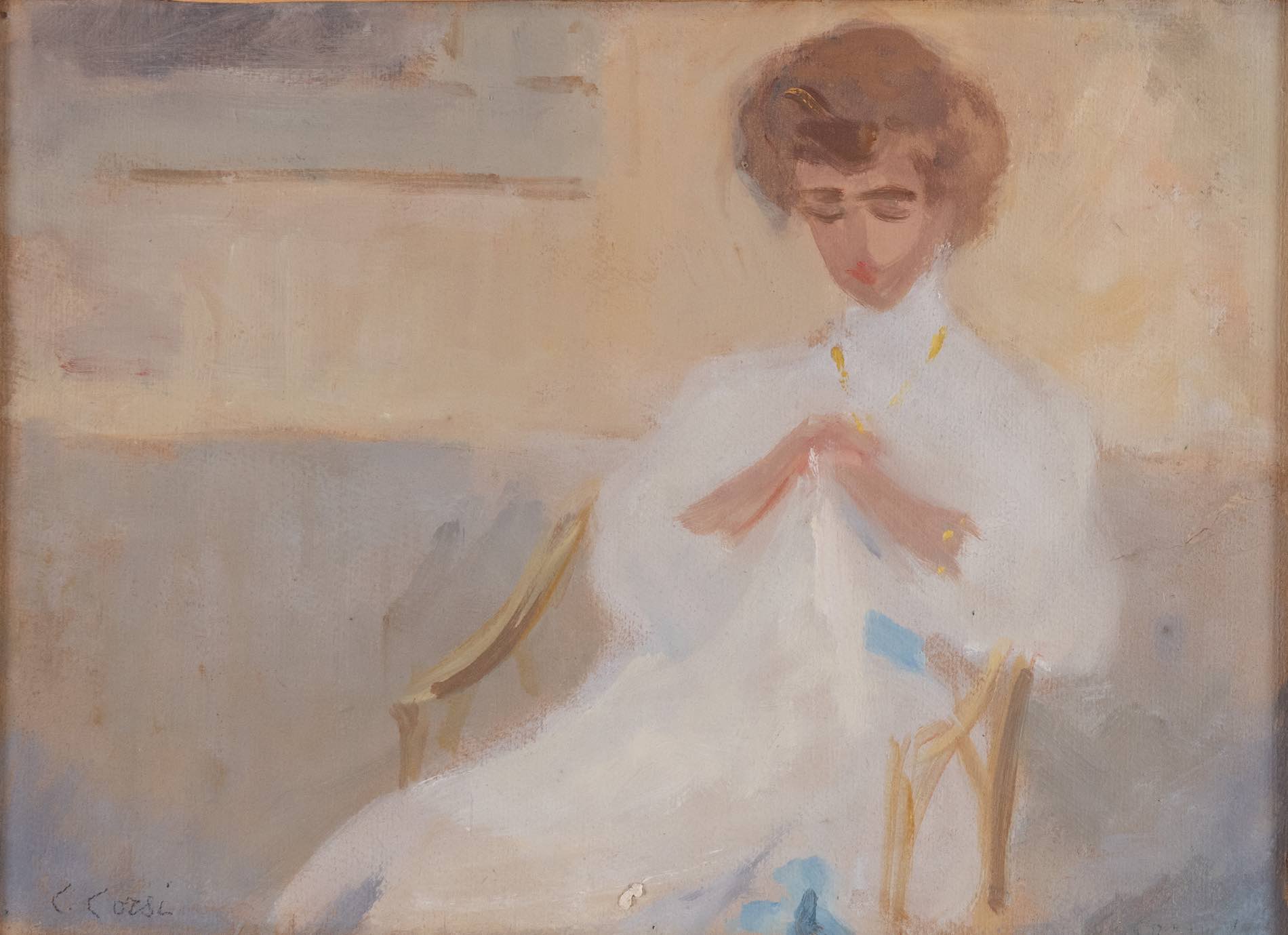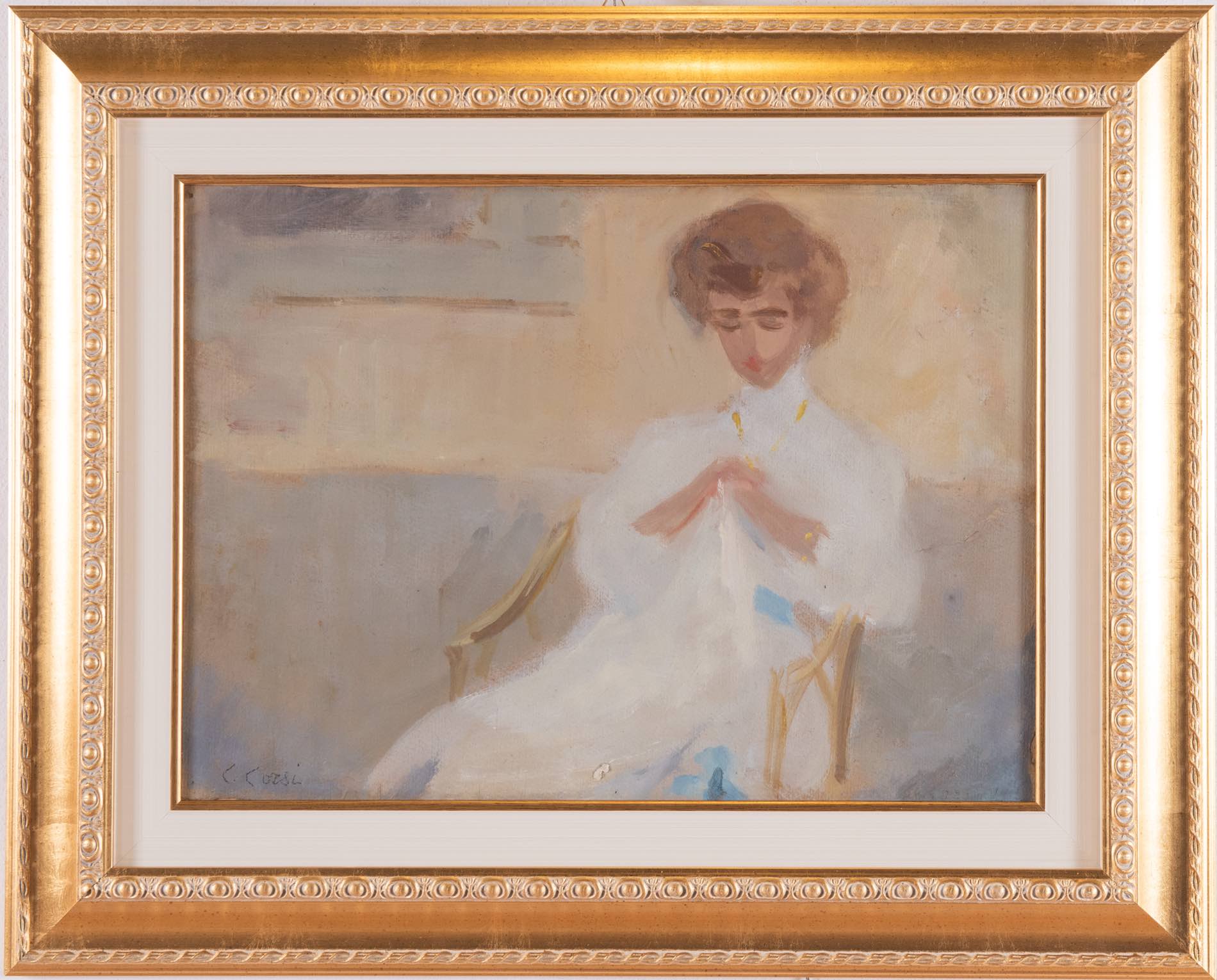 Carlo Corsi (Nizza 1879 - Bologna 1966), “Figura femminile”, 1915. Olio su carta applicata a tavola, firmato in basso a sinistra C. Corsi, al retro reca data 1915, H cm 38x52 - con cornice H cm 59x73
