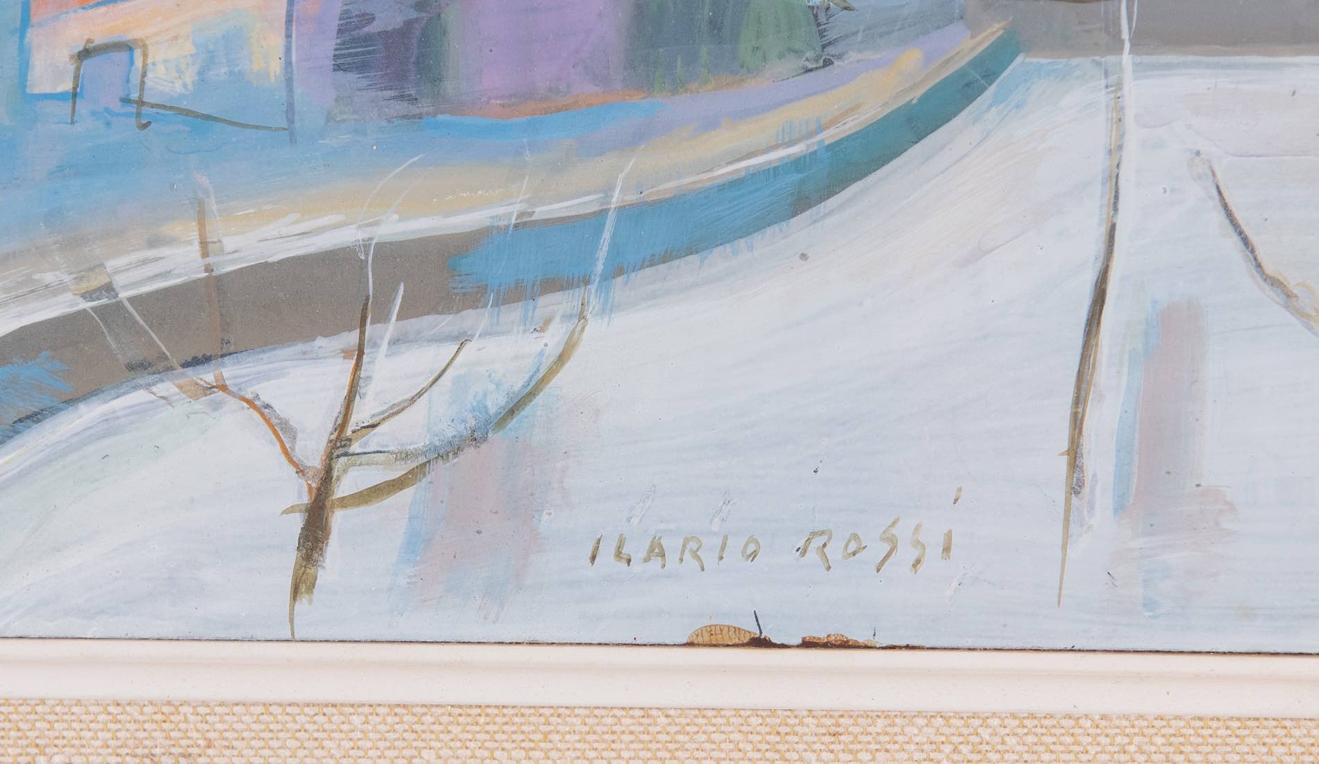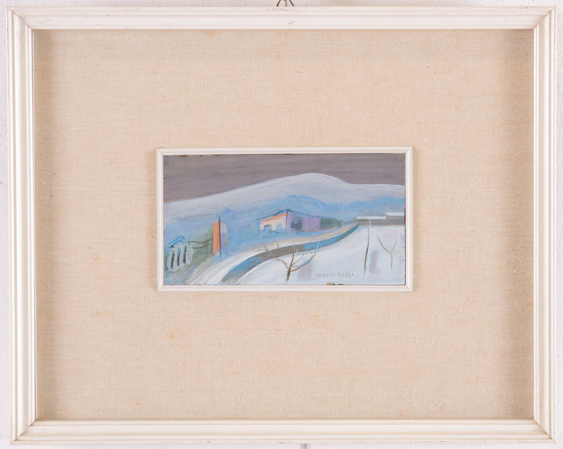 Ilario Rossi (Bologna 1911 - 1994), “Paesaggio con casolare”. Olio su faesite firmato in basso al centro Ilario Rossi, H cm 11x20 - con cornice H cm 37x46