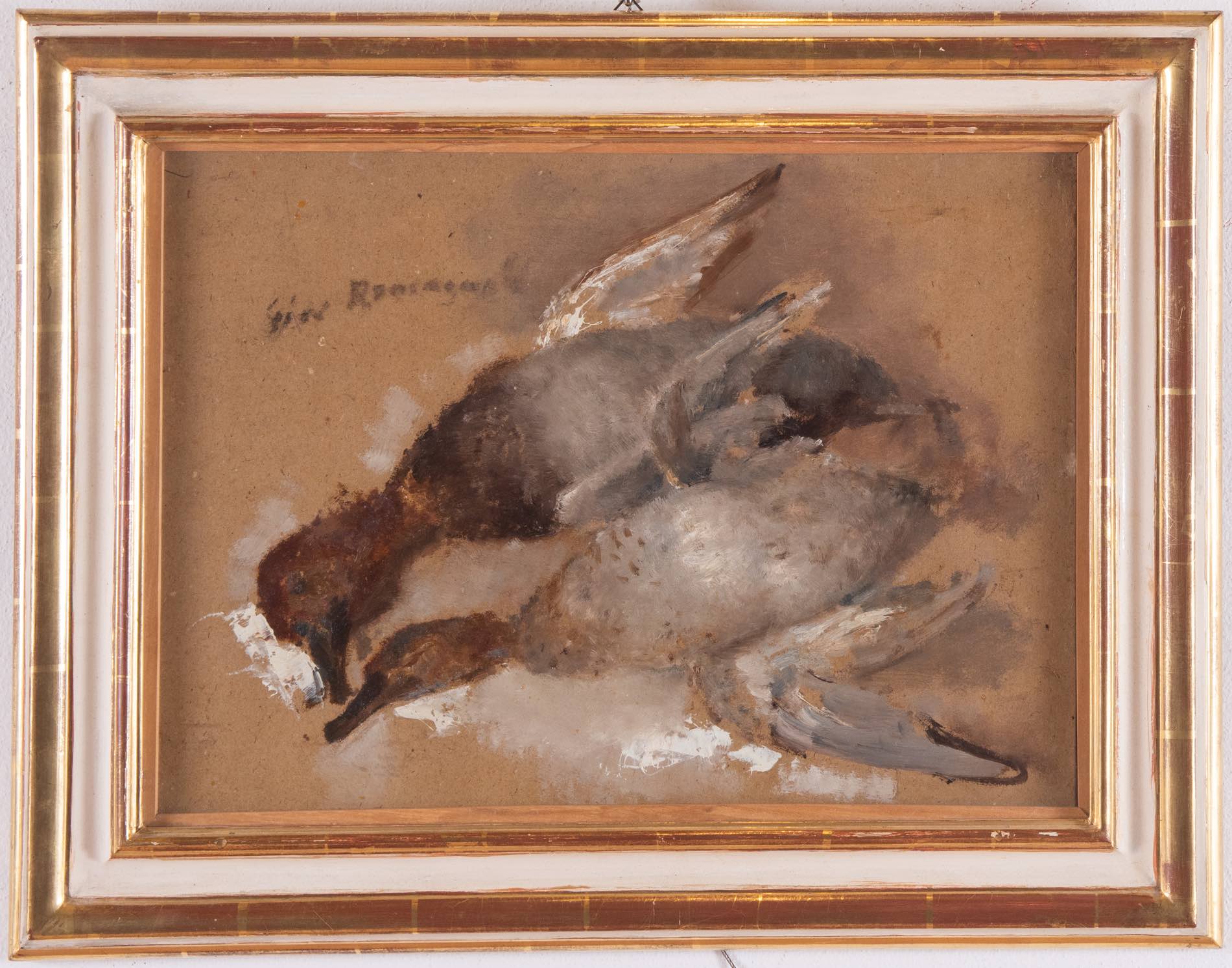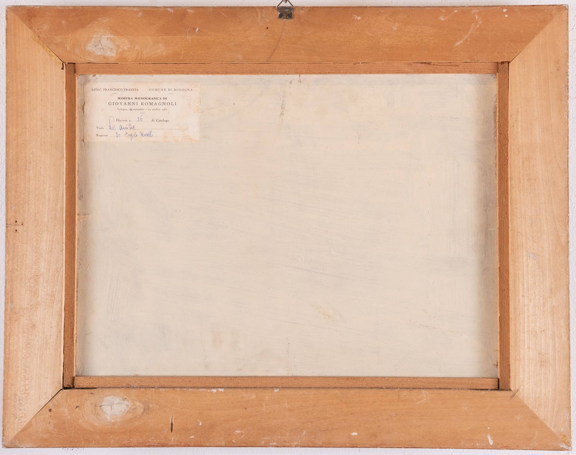 Giovanni Romagnoli (Faenza 1893 - Bologna 1976), “Le anitre”, 1950. Olio su tavola, firmato in alto a destra 'Giov. Romagnoli', H cm 35.5x48 - con cornice H cm 48x61 - Al retro reca etichetta di esposizione 'Mostra Monografica di Giovanni Romagnoli' 24 Settembre - 29 Ottobre 1961, Palazzo Re Enzo - Bologna. Opera pubblicata in 'Mostra Monografica di Giovanni Romagnoli' a piena pagina con numero 86.