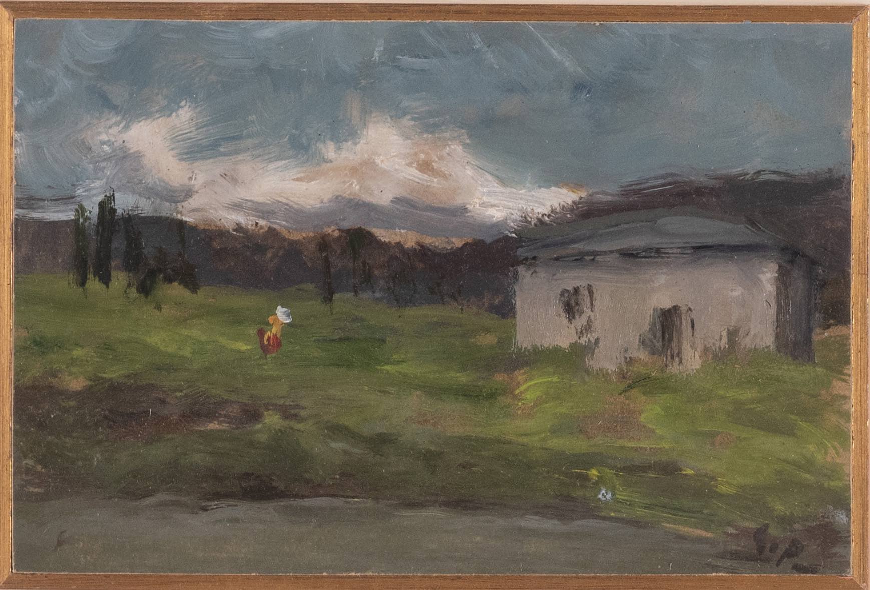 Guglielmo Pizzirani (Bologna 1886 - 1971), “Paesaggio”. Olio su tavola, siglato in basso a destra G. P., H cm 16x24 - con cornice H cm 40x48