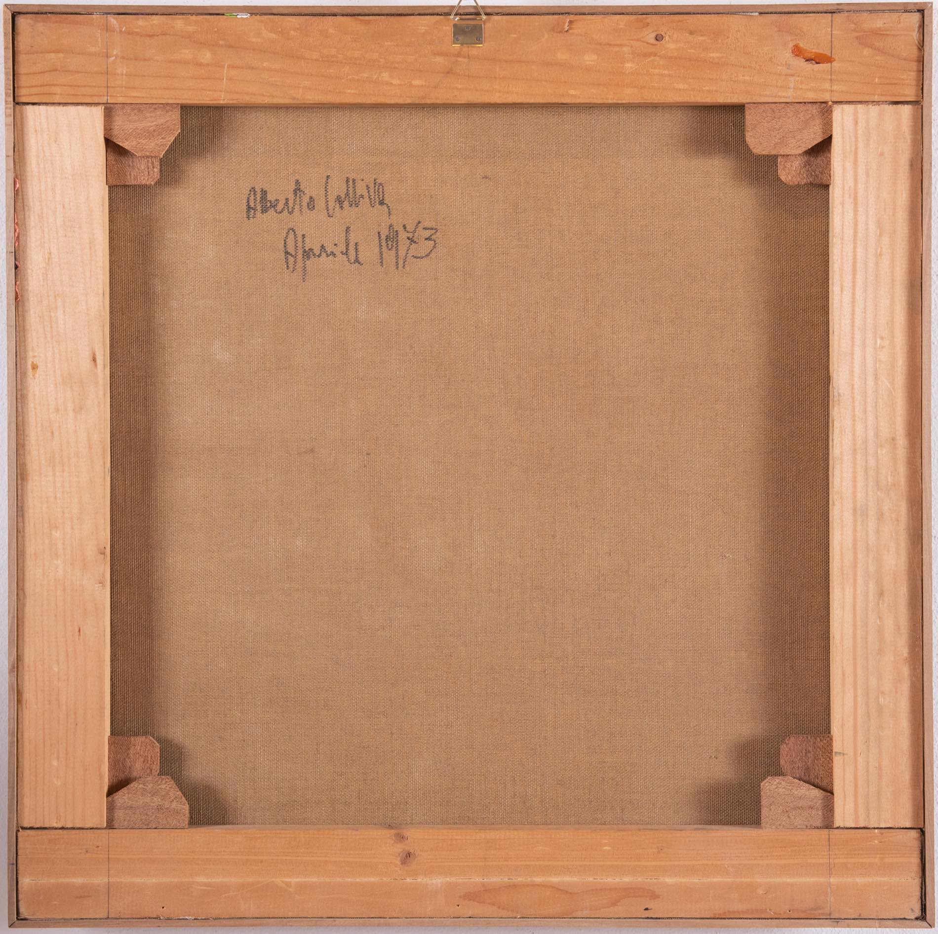 Alberto Colliva (Bologna 1943), “Senza Titolo”, 1973. Olio su tela, firmato e datato al retro Alberto Coliva - Aprile 1973, H cm 60x60