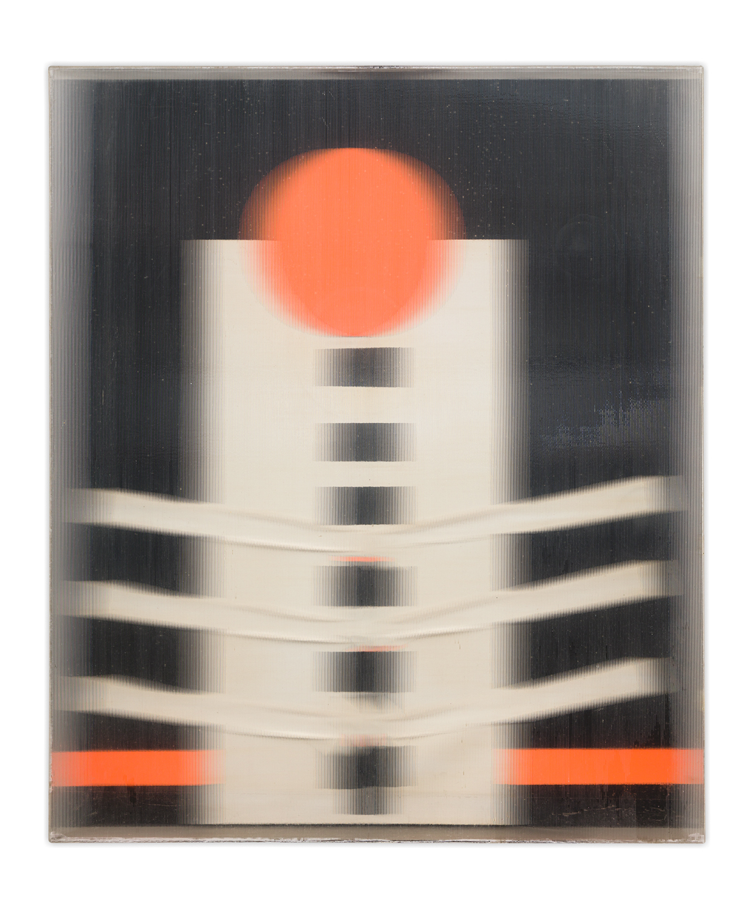 L'opera presenta lieve sporco superficiale e una mancanza del plexiglass all'angolo inferiore destro (visibile solo dal retro)