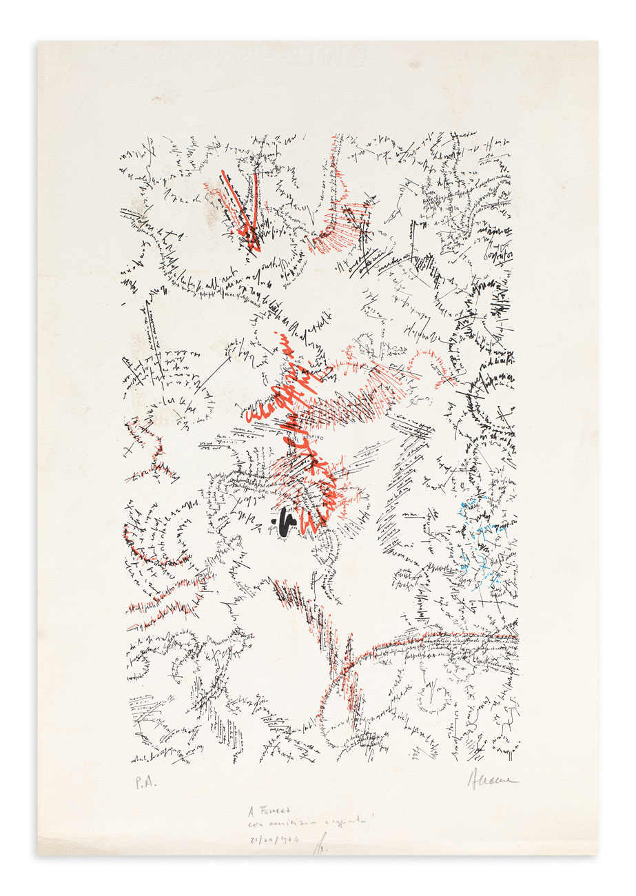 Firma, datazione, dedica ad personam e numerazione (Esemplare P.A.) a matita al fronte