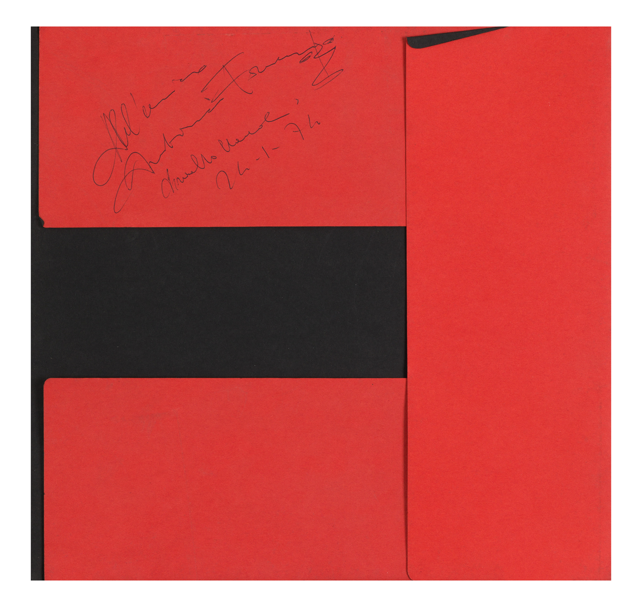 Entro cartella originale, recante firma e dedica ad personam dell'Artista all'interno