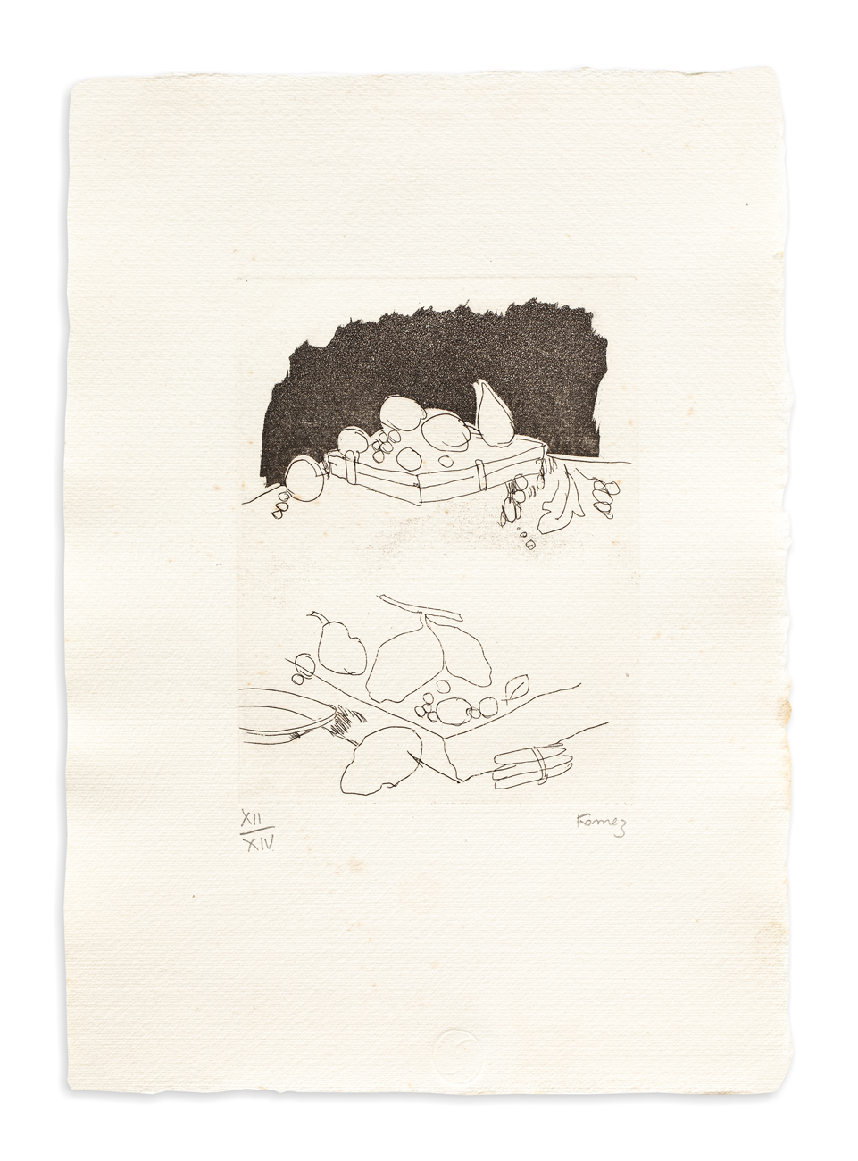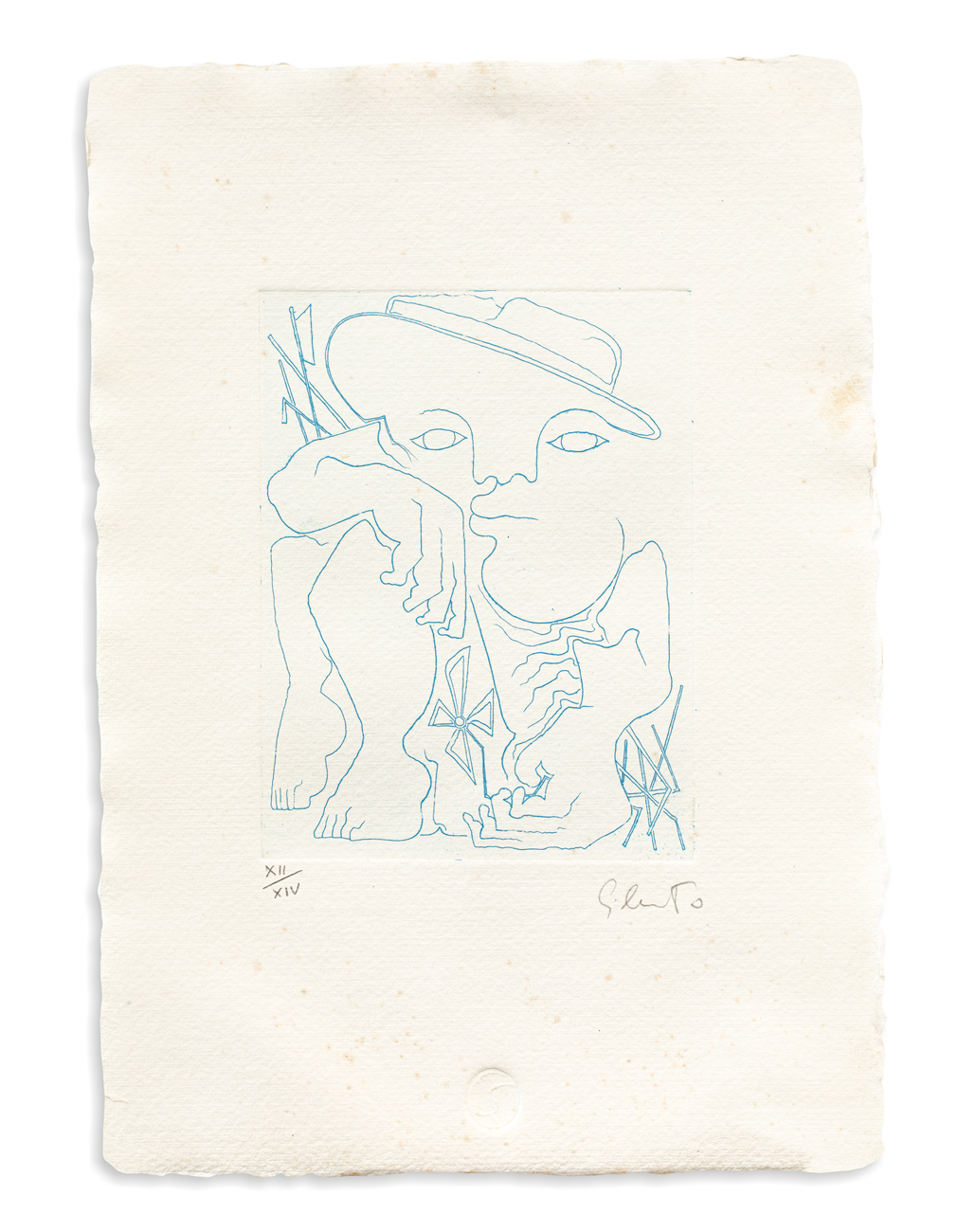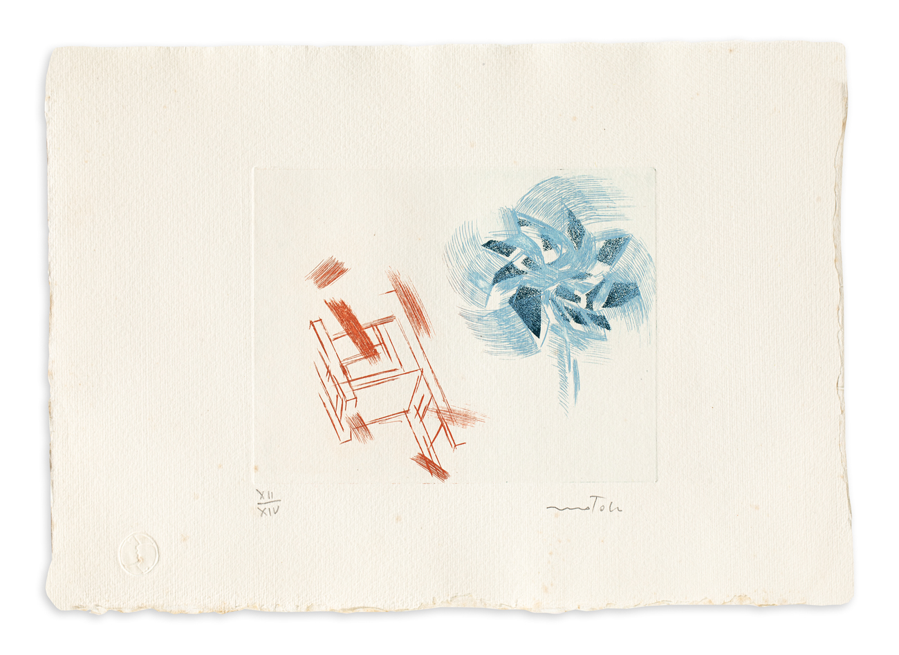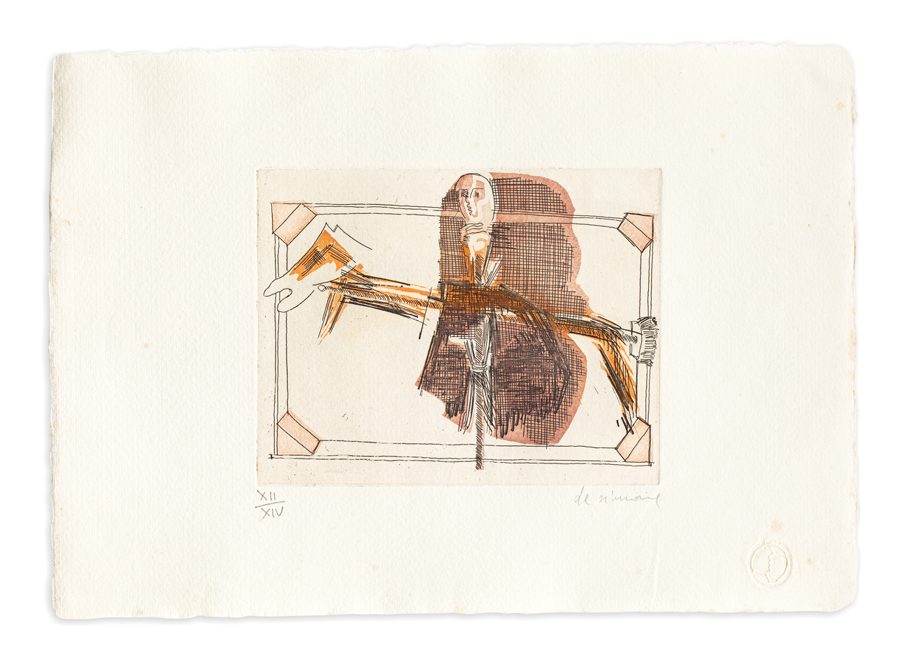 Cartella contenente testo di presentazione di Rita Felerico e 13 incisioni di Vittorio Avella, Felice Bifulco, Geppino Cilento, Pasquale Coppola, Vincenzo De Simone, Salvatore Emblema, Antonio Fomez, Antonio Napolitano, Annibale Oste, Aulo Pedicini, Mario Persico, Antonio Petti, Errico Ruotolo e Andrea Sparaco, ciascuna recante firma e numerazione (Esemplari XII/XIV) a matita al fronte