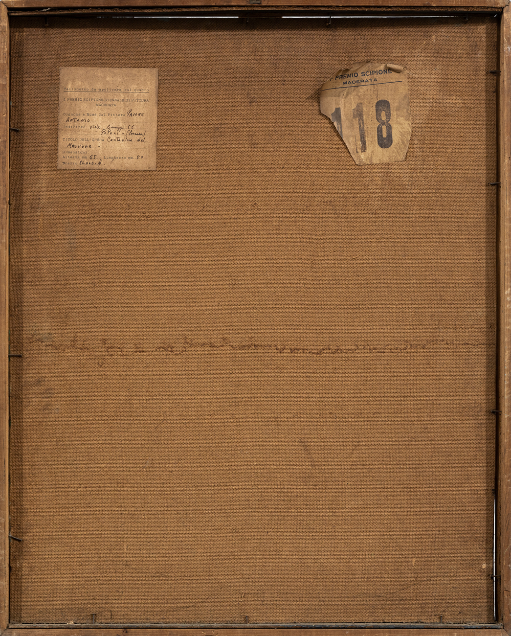 Etichetta del 1° Premio Scipione Biennale di pittura di Macerata al retro