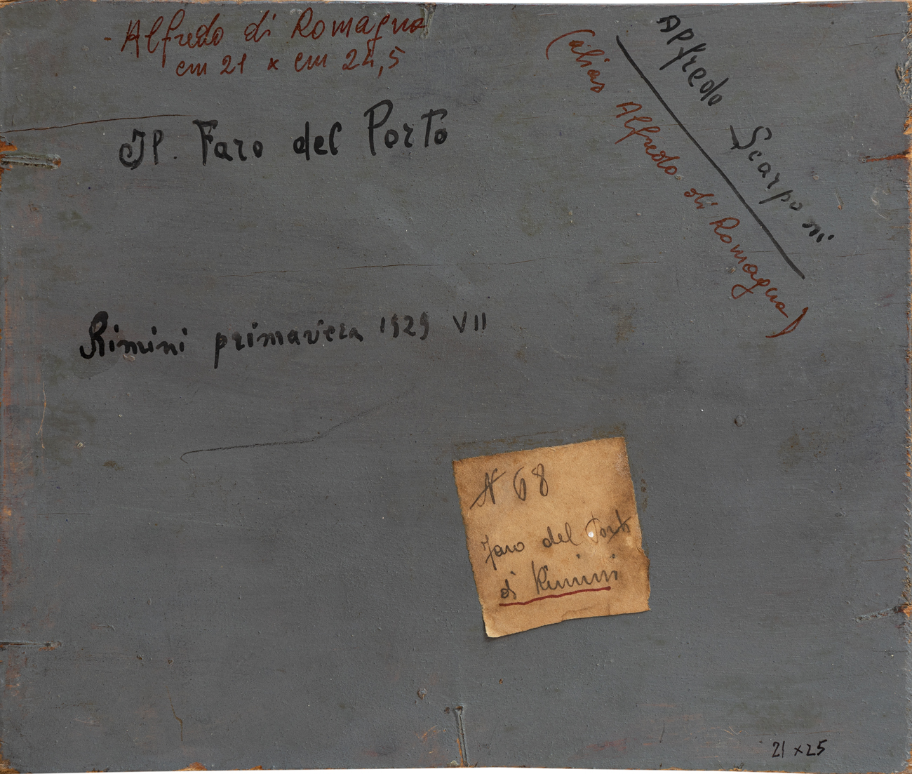 Firma, titolo e iscrizione "Rimini primavera 1929 VII" al retro