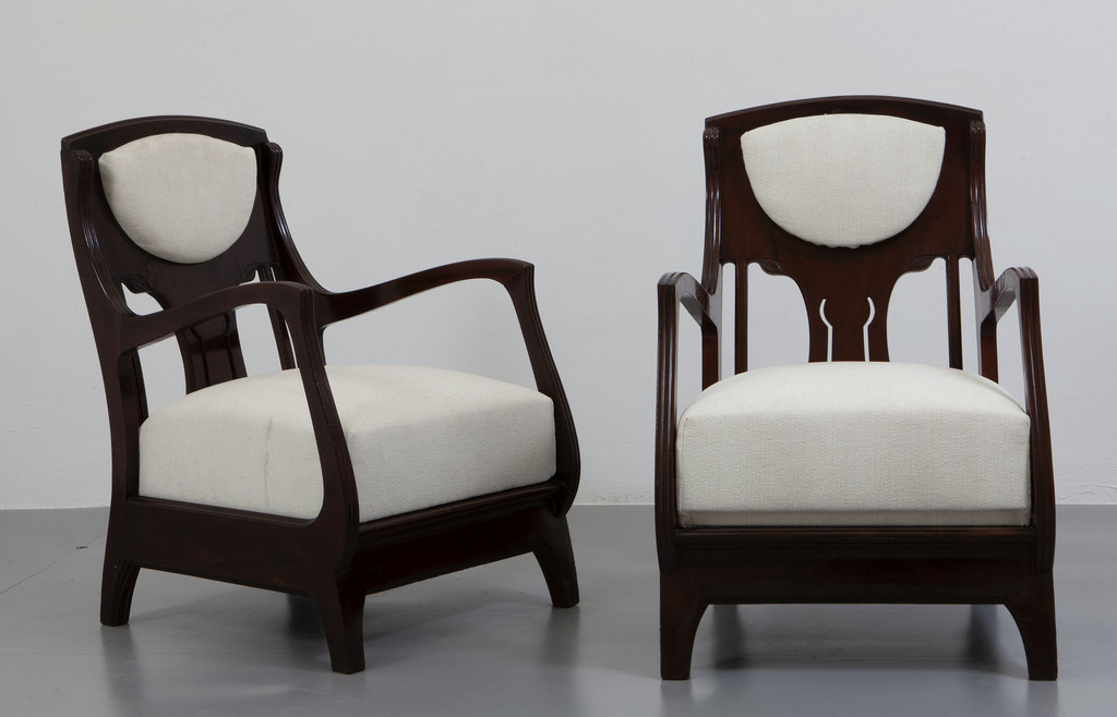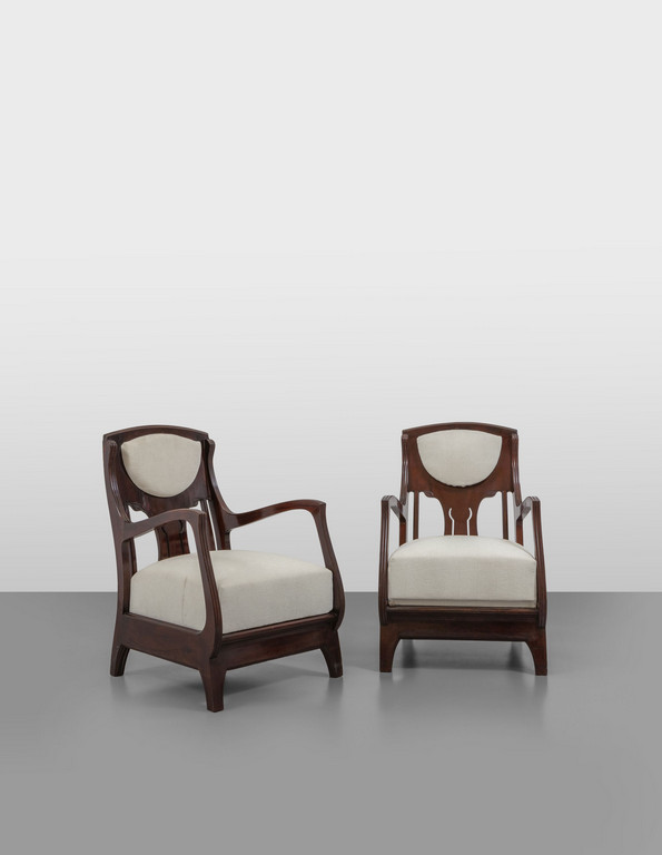 Legno di mogano parti imbottite rivestite in tessuto (non originale).