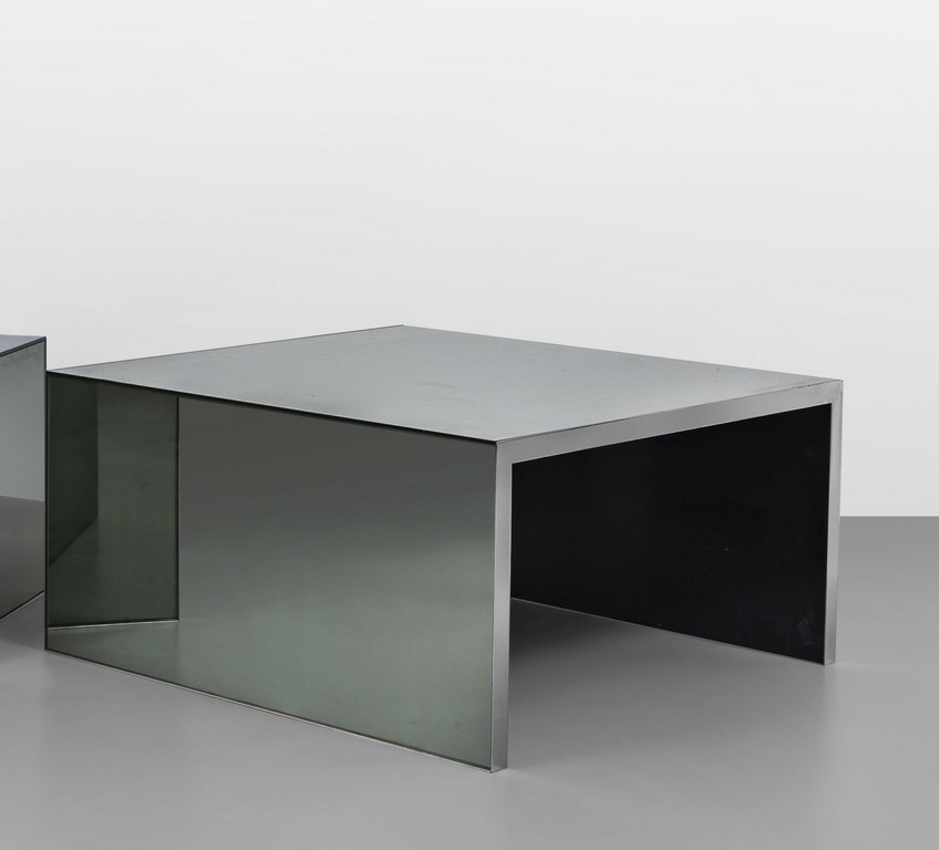 Chrome-plated glass and mirrored coloured crystal.