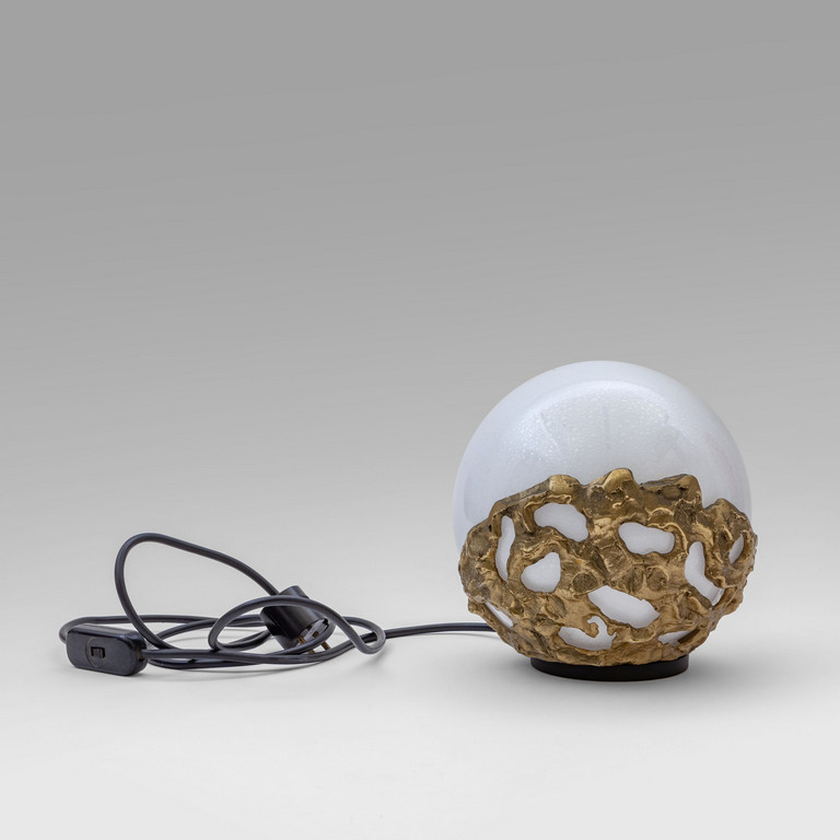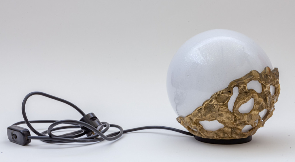 Varnished steel cast brass and bollicine glass.