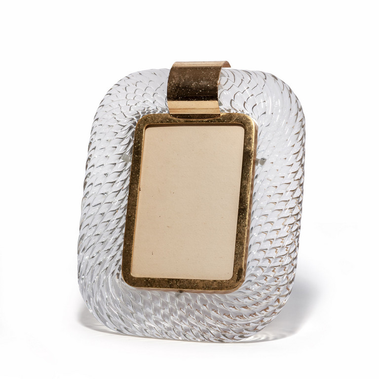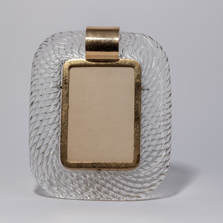 Un portaritratti in cristallo ritorto e ottone anni '60.
