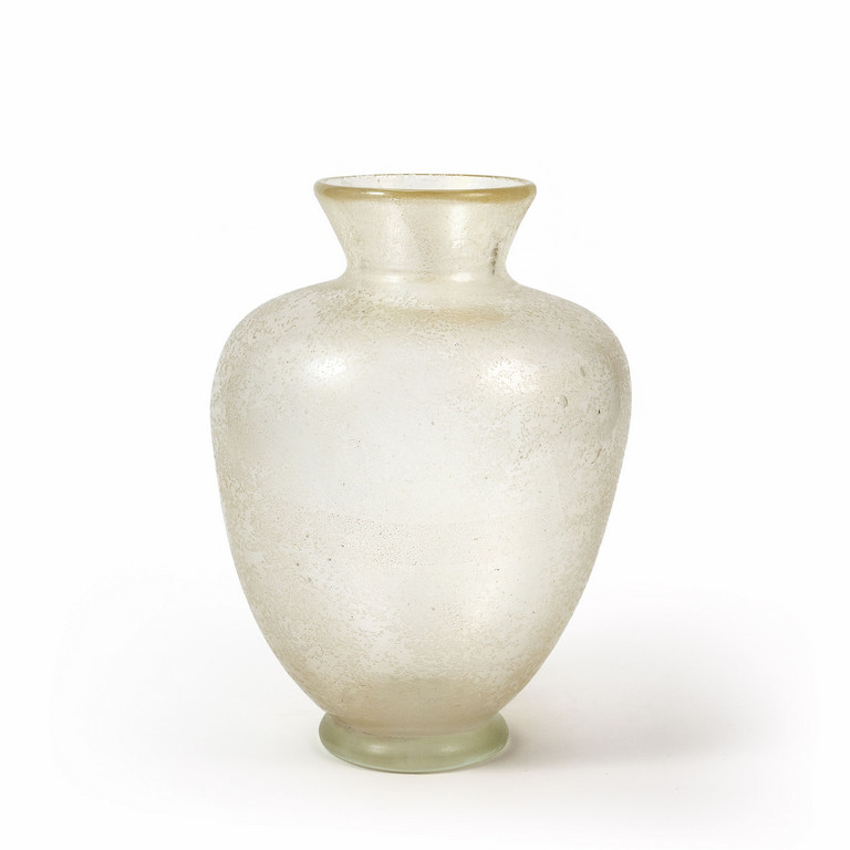 Un grande vaso in vetro trasparente corroso e applicazione di foglia oro circa 1938.