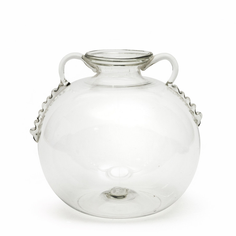 Un vaso sferico soffiato in sottile cristallo con applicazione di due piccole anse circa 1925.
