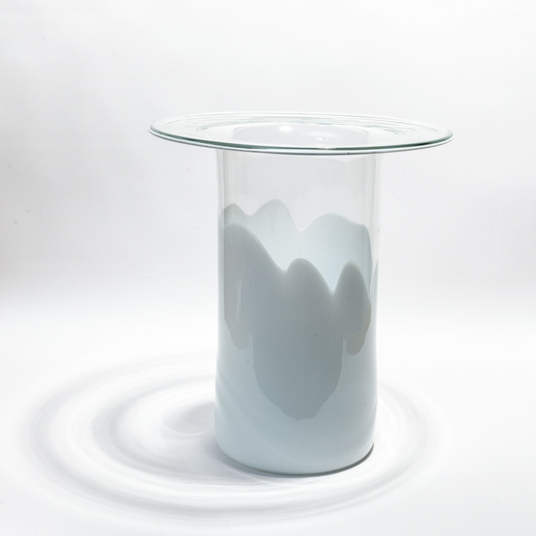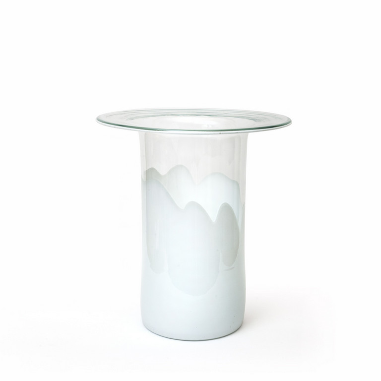 Un portaombrelli in vetro soffiato cristallo e lattimo.