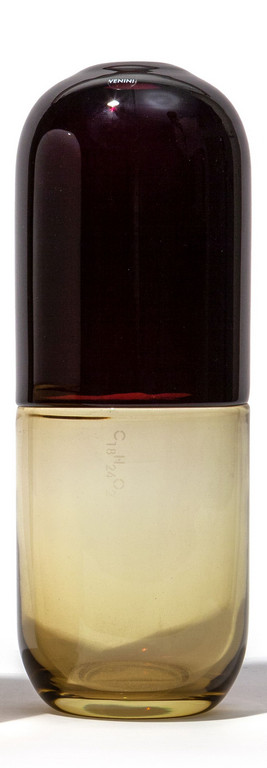 Un vaso 'Happy Pills' C18 H24 O2 (estradiolo) inciso a getto di sabbia 2012.