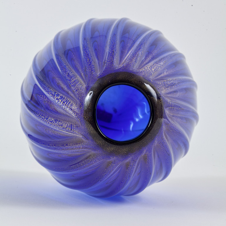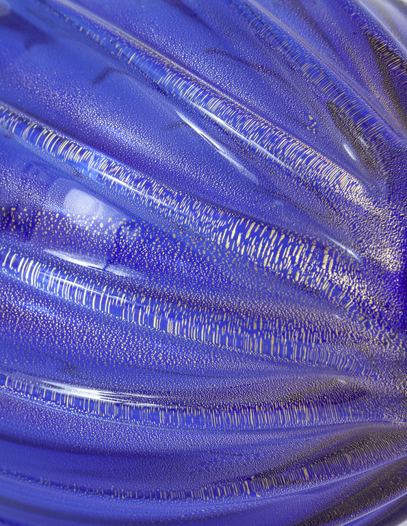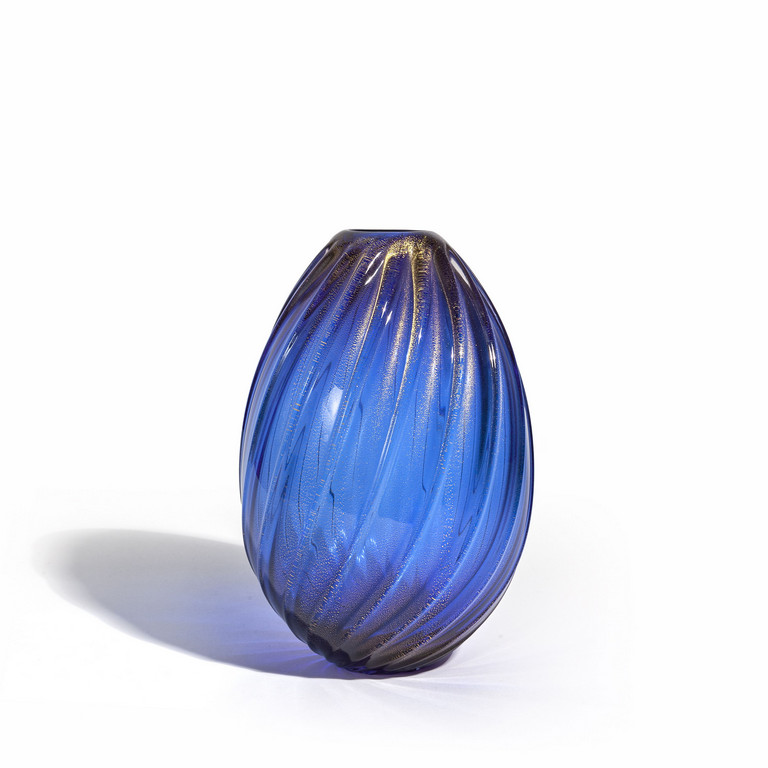 Un vaso ovale blu a coste e foglia oro circa 1990.