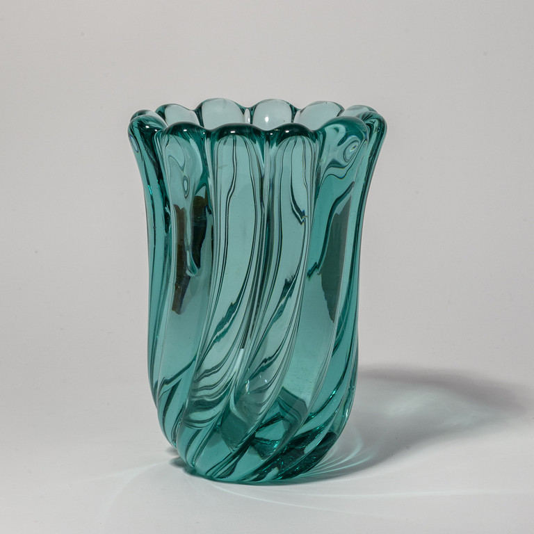 Una coppa in vetro verdino trasparente costolato ritorto 1942.