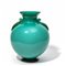 Un vaso incamiciato verde con applicazione di due palme arricciate ai lati in vetro trasparente e foglia oro circa 1930.