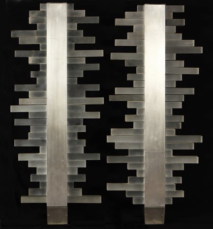 RAVASIO GIUSEPPE Rara coppia di grandi appliques modello Modulo Lamp. 1968. Acciao e plexiglass. Cm 47,00 x 108,00 x 10,00. Prodotto per Newlamp.