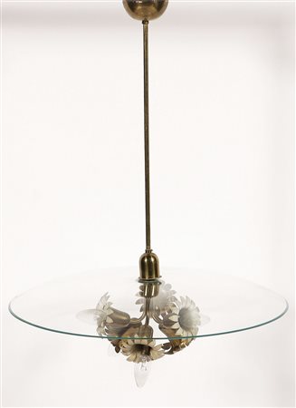 INGRAND MAX (1908 - 1969) Lampadario. Ottone e vetro. Cm 62,00 x 76,00. Prodotto per Fontana Arte. 1938/40