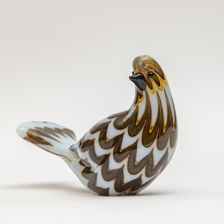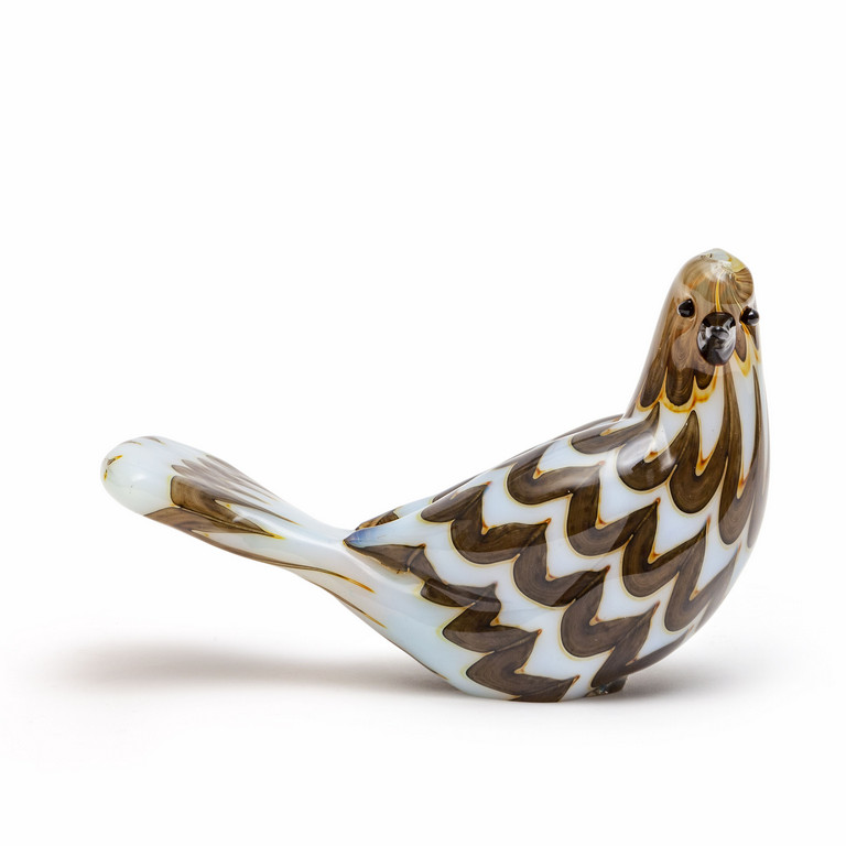 Una rara figura di colomba in vetro opalino con decoro di spirale ondulata verde oliva circa 1955.