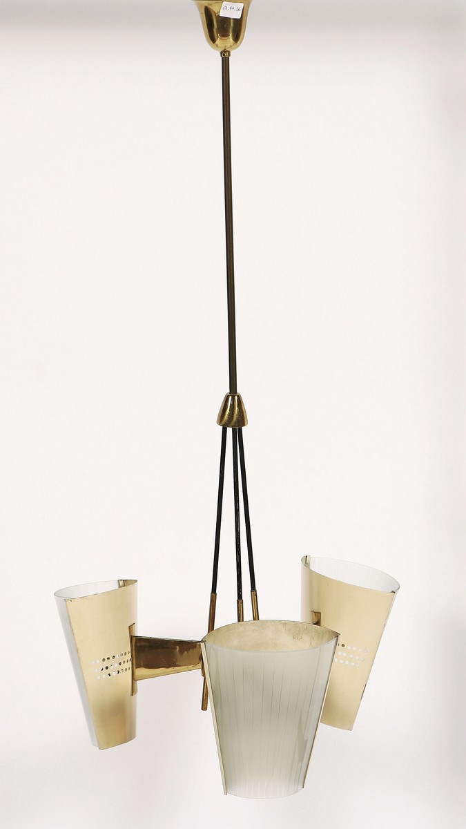 CHIARINI BRUNO Lampadario. Vetro e ottone. Cm 50,00 x 92,00. Chiarini Bruno, Milano. Anni '50.