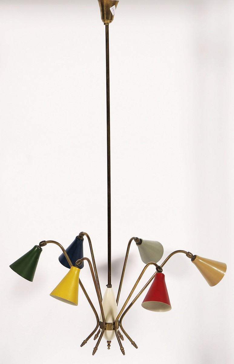 MANIFATTURA ITALIANA DEL XX SECOLO Lampadario. Ottone e alluminio. Cm 70,00 x 110,00. Anni `50.