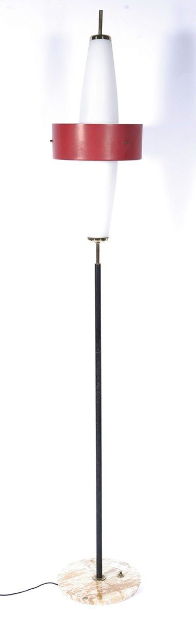 STILNOVO Lampada da terra. Metallo e vetro. Cm 30,00 x 210,00. Anni '50.