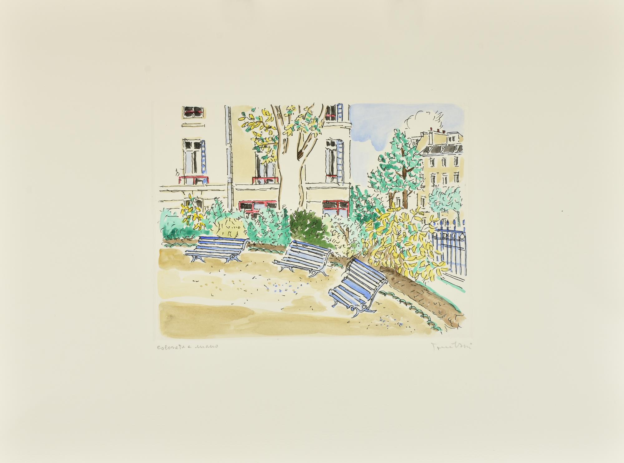Lot 42 | Orfeo Tamburi PARCO PARIGINO incisione su carta colorata a mano, battuta cm...