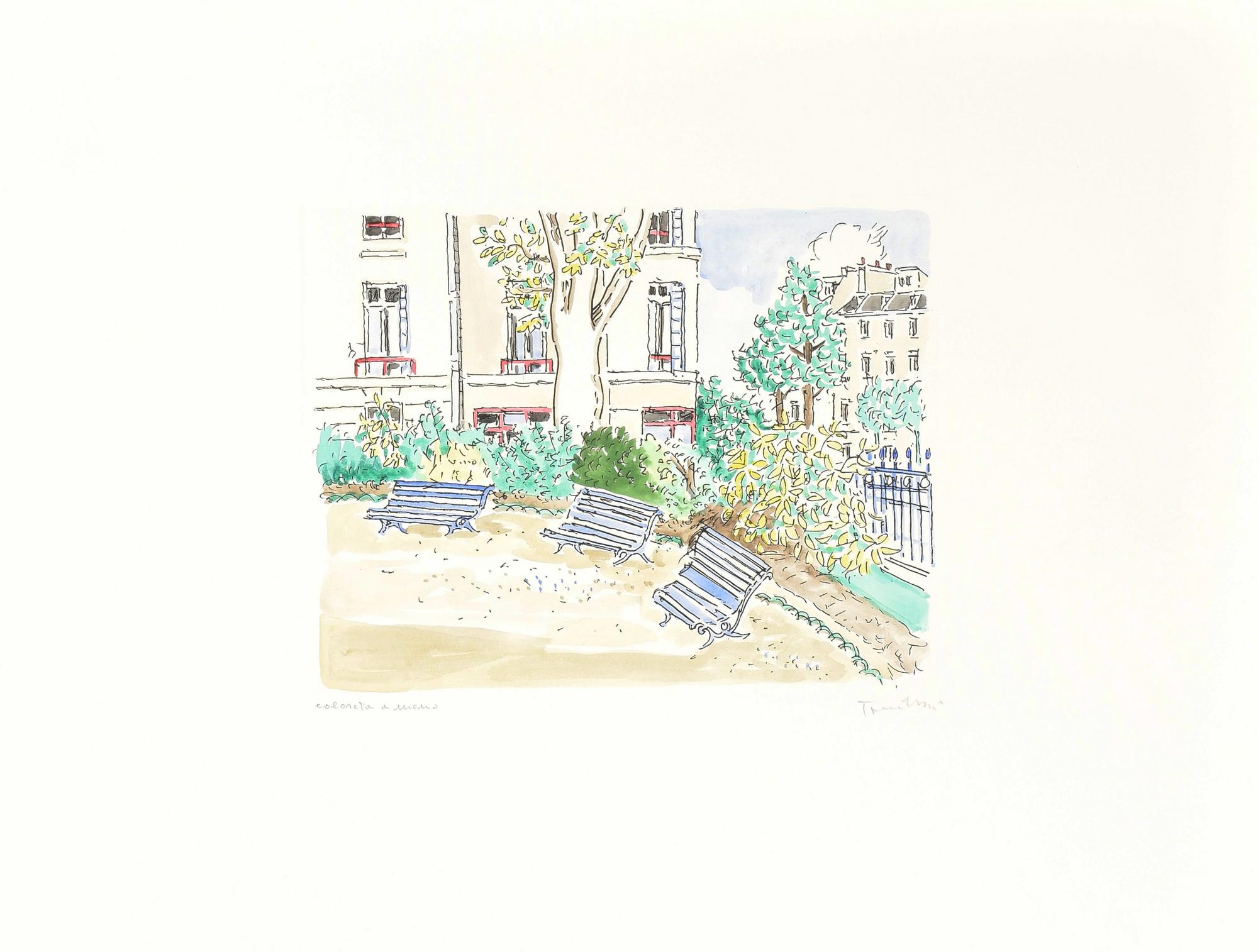 Orfeo Tamburi PARCO PARIGINO incisione su carta colorata a mano, battuta cm...