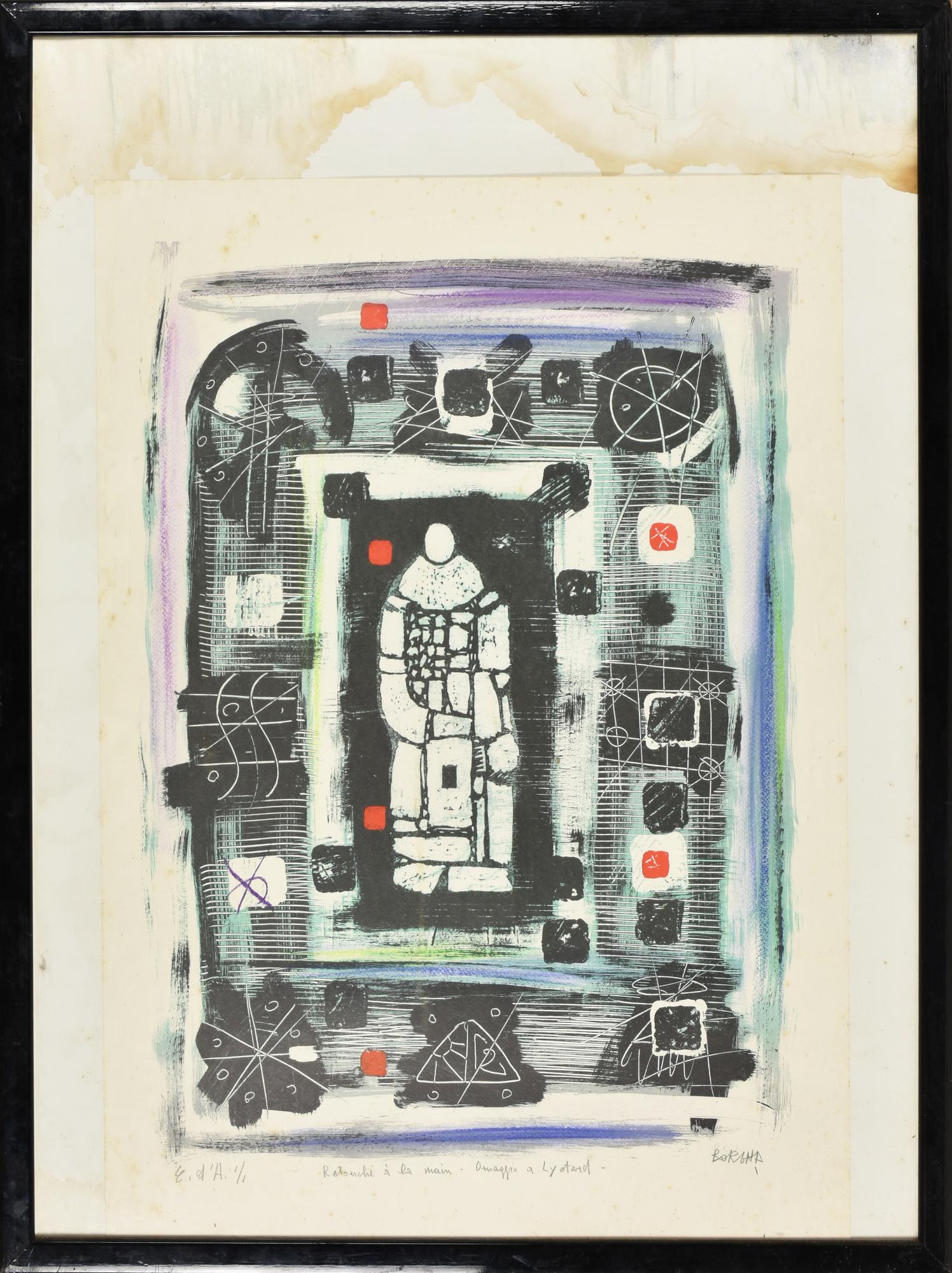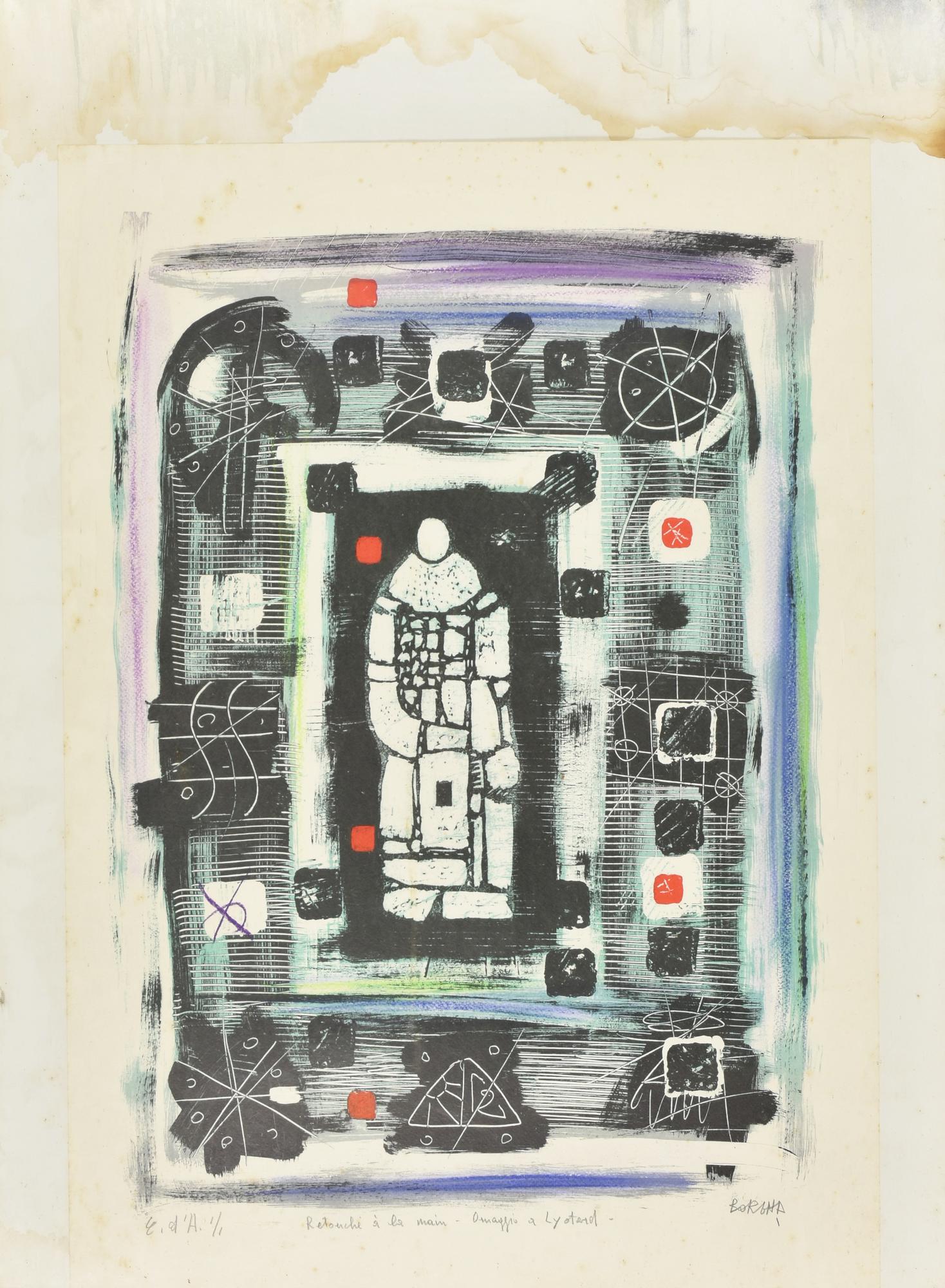 Mario Bornia LYOTARD litografia su carta ritoccata a mano, cm 70x50; es. 1/1...