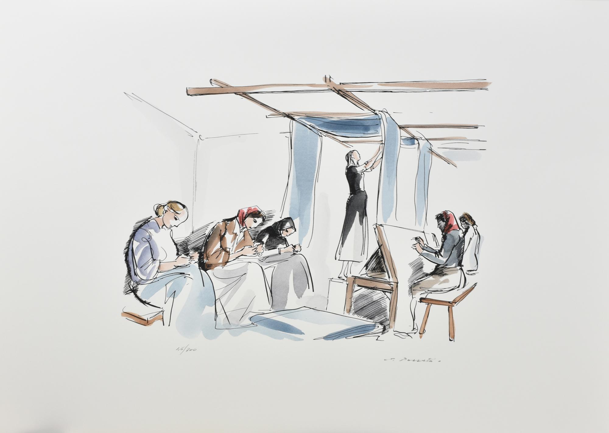 cartella contenente 12 opere grafiche originali dipinte all'acquarello, cm 70x50; es. 46/300