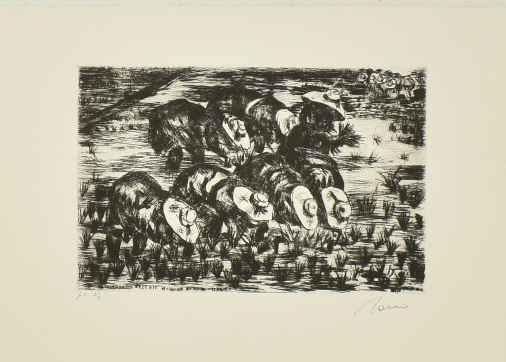 Tono Zancanaro CORO DELLE VECCHIE MONDINE DI RONCOFERRARO acquaforte, mm...