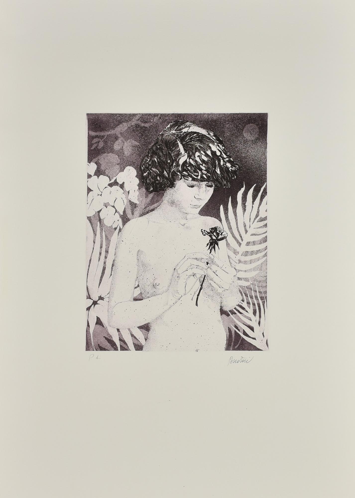 Carlo Pescatori FANCIULLA CON ROSA acquaforte acquatinta, mm 322x245, su...