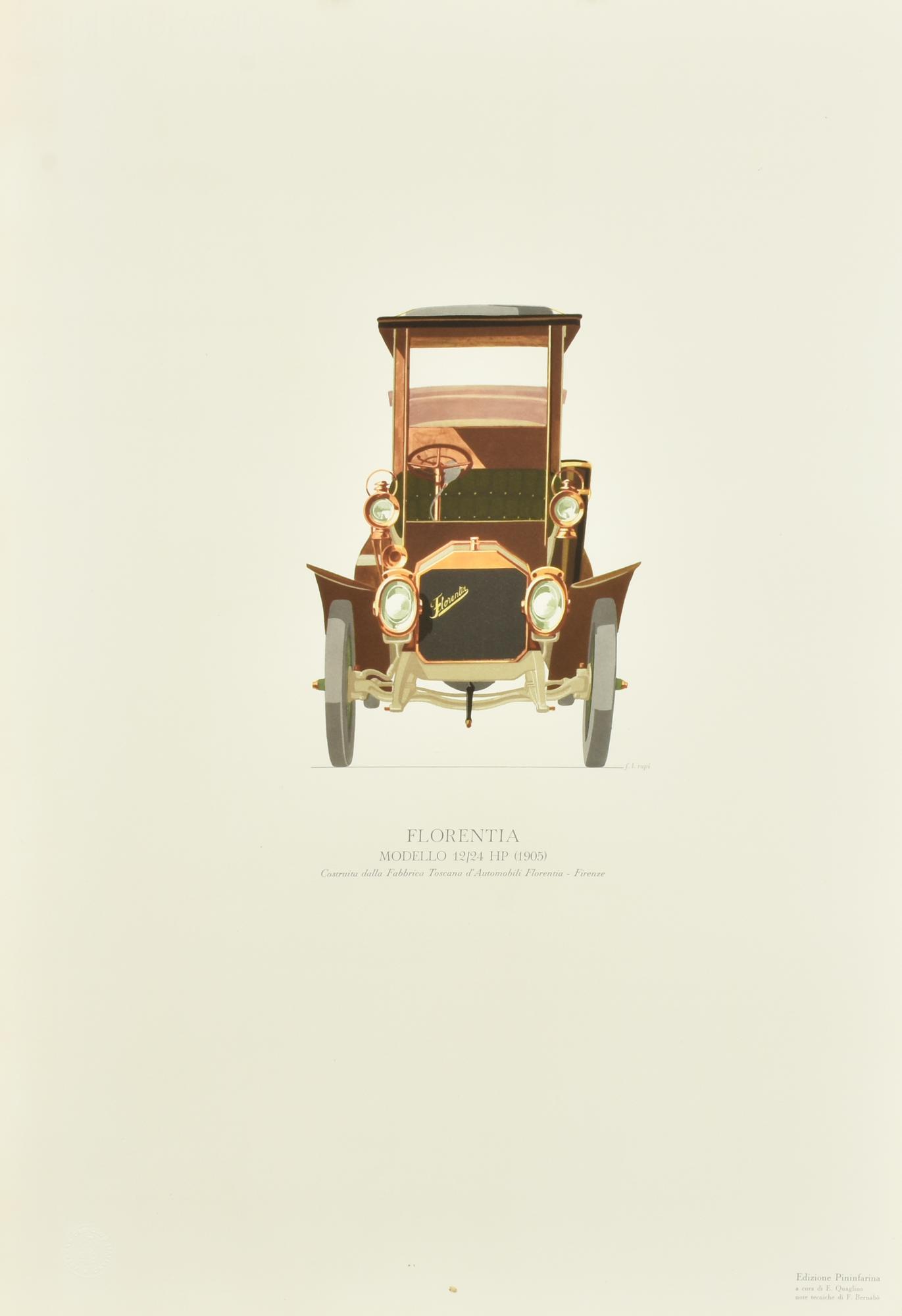 Luigi Fabio Rapi LE PRIME AUTOMOBILI ITALIANE Modello 'FLORENTIA' stampa su...