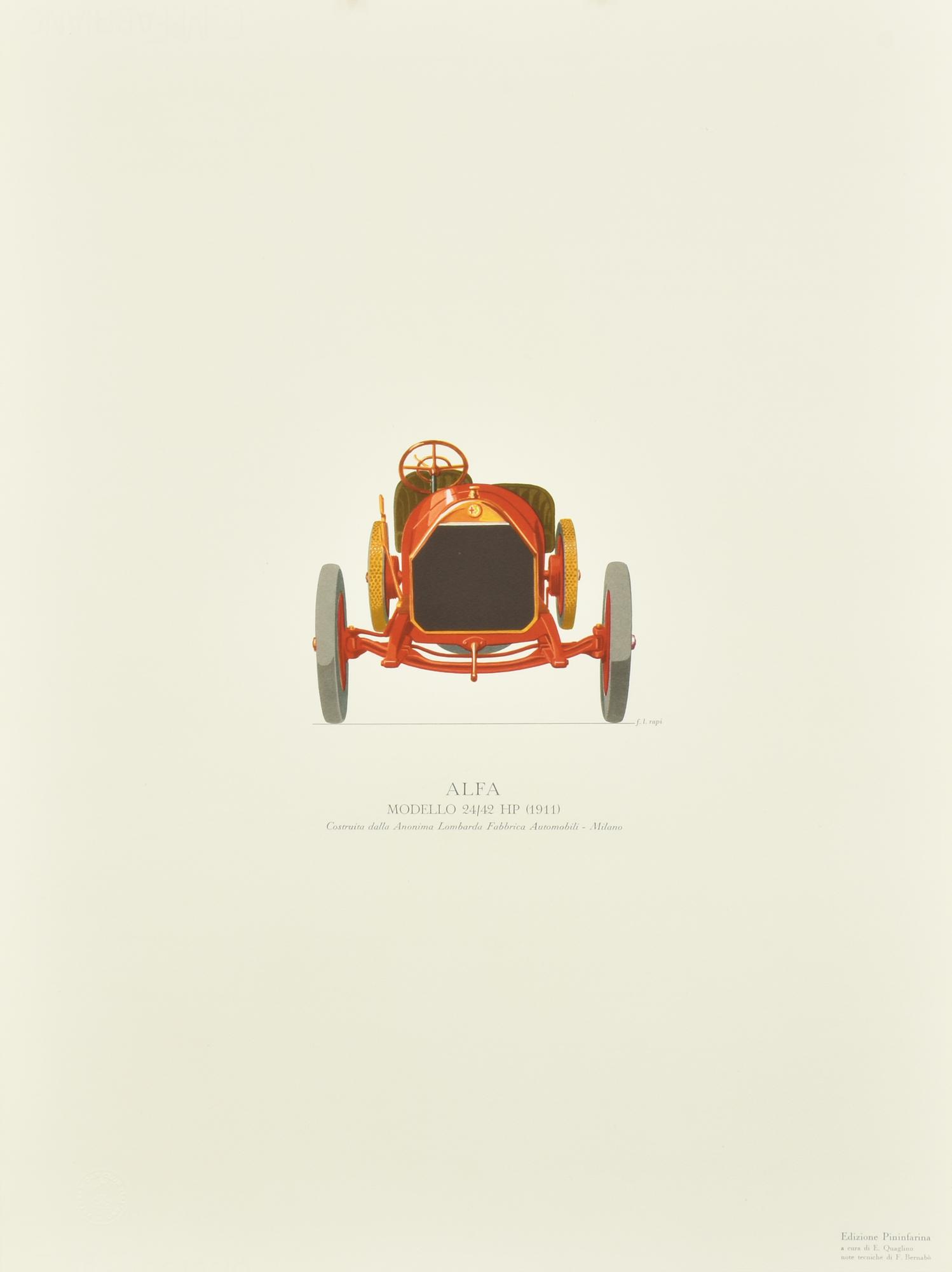 Luigi Fabio Rapi LE PRIME AUTOMOBILI ITALIANE Modello 'Alfa' stampa su carta,...