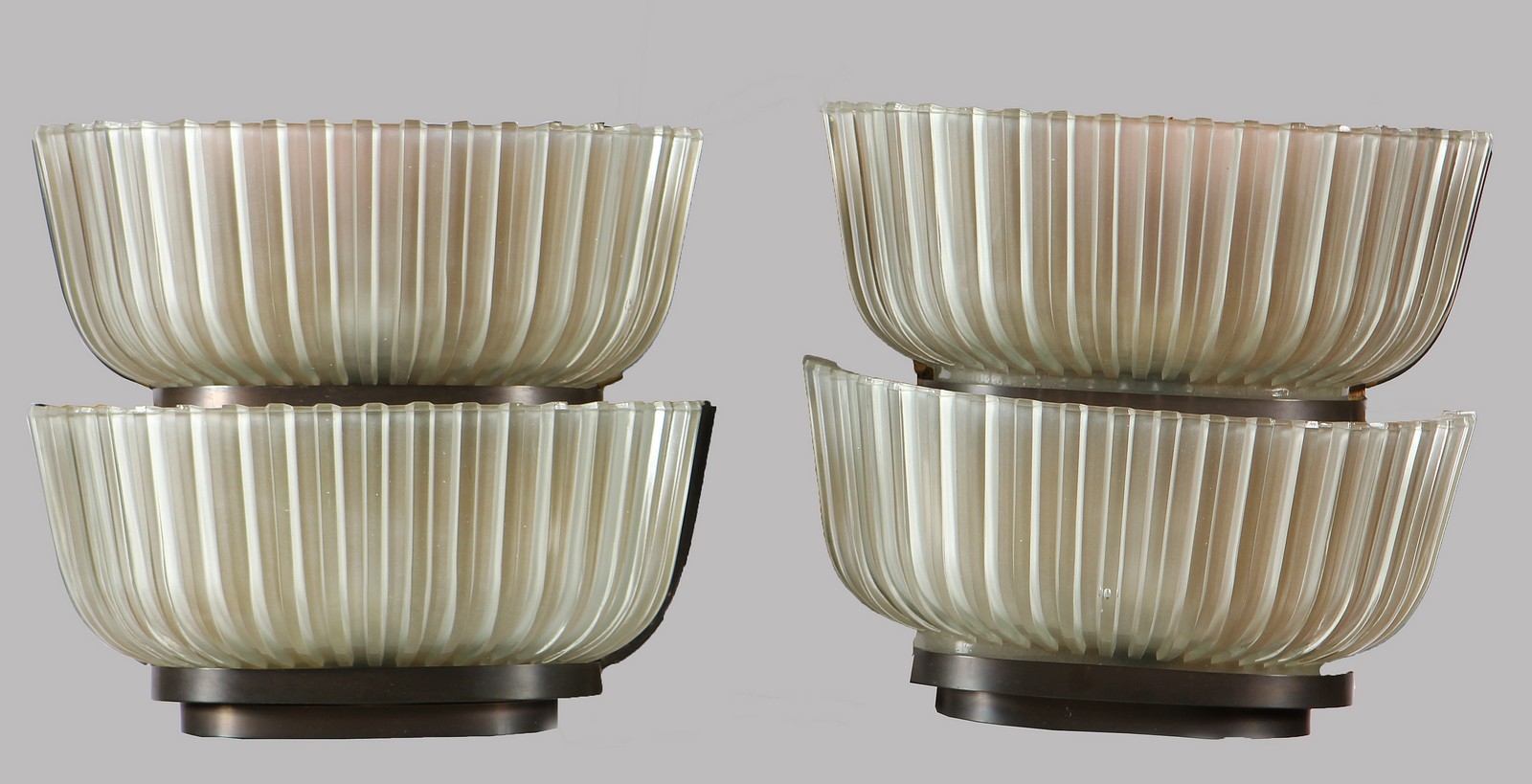 MANIFATTURA ITALIANA DEL XX SECOLO Coppia di apliques. Vetro e metallo. Cm...
