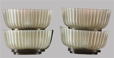 MANIFATTURA ITALIANA DEL XX SECOLO Coppia di apliques. Vetro e metallo. Cm 27,00 x 31,00 x 13,00. Anni `40.